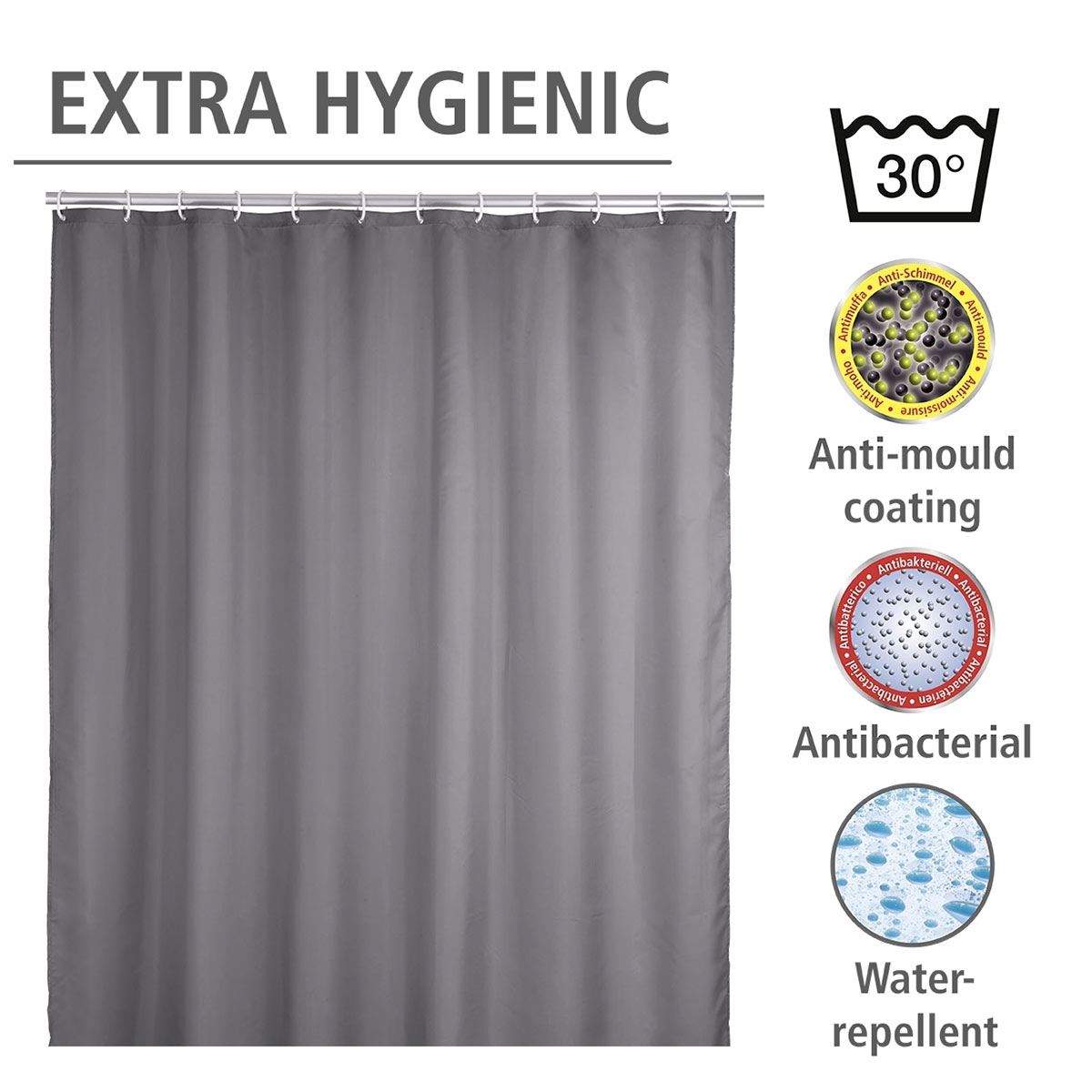Udover at være mug-resistent er badeforhænget vandtæt og har fået en antibakteriel coating.