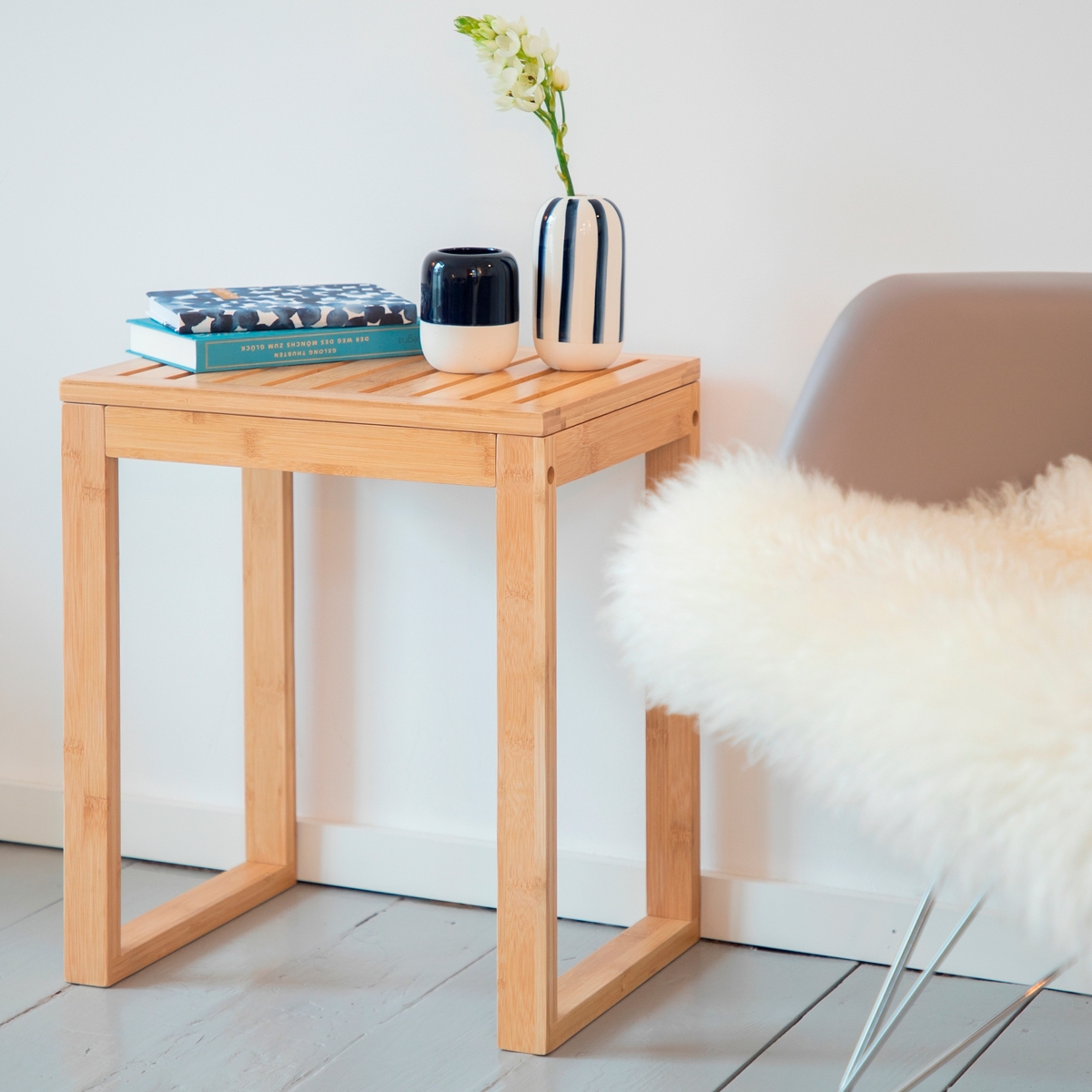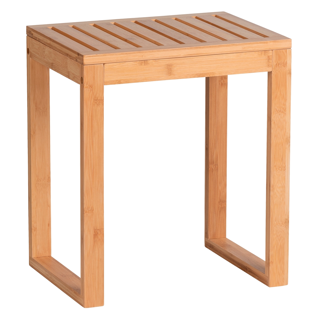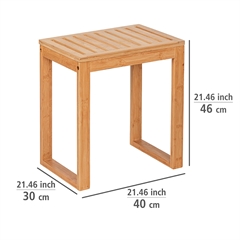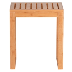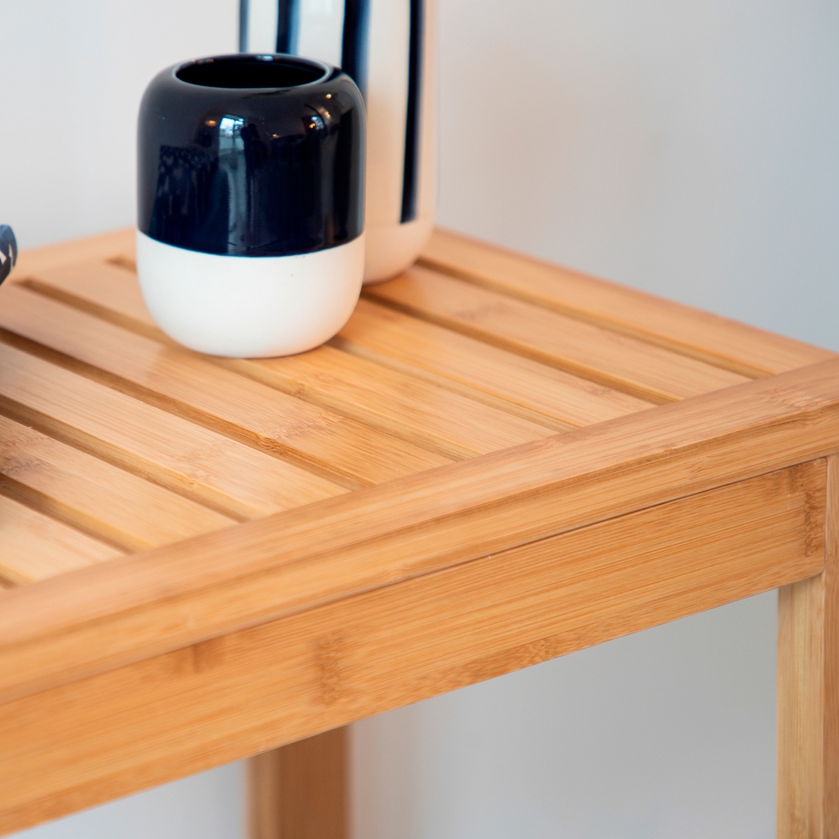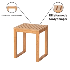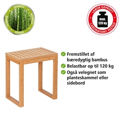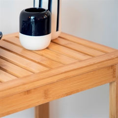 Taburet eller stol i bambus beregnet som siddeplads på badeværelset eller til at lægge tøj på. Kan selvfølgelig også bruges som taburet andre steder i huset eller som et sidebord eller bord til planter.