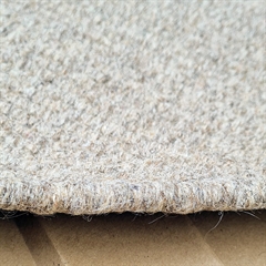 Ensfarvet uldtæppe i råhvidt uld. Håndlavet i Indien af dygtige håndværkere. Lavet af ren ny uld fra New Zeeland. Et uldtæppe rengøres med støvsugning.