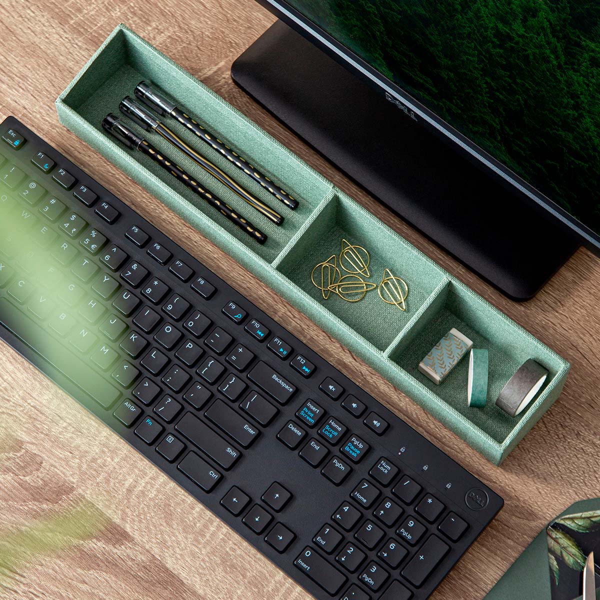 En smart lang penneholder eller en ruminddelt bakke til kontorbordet.