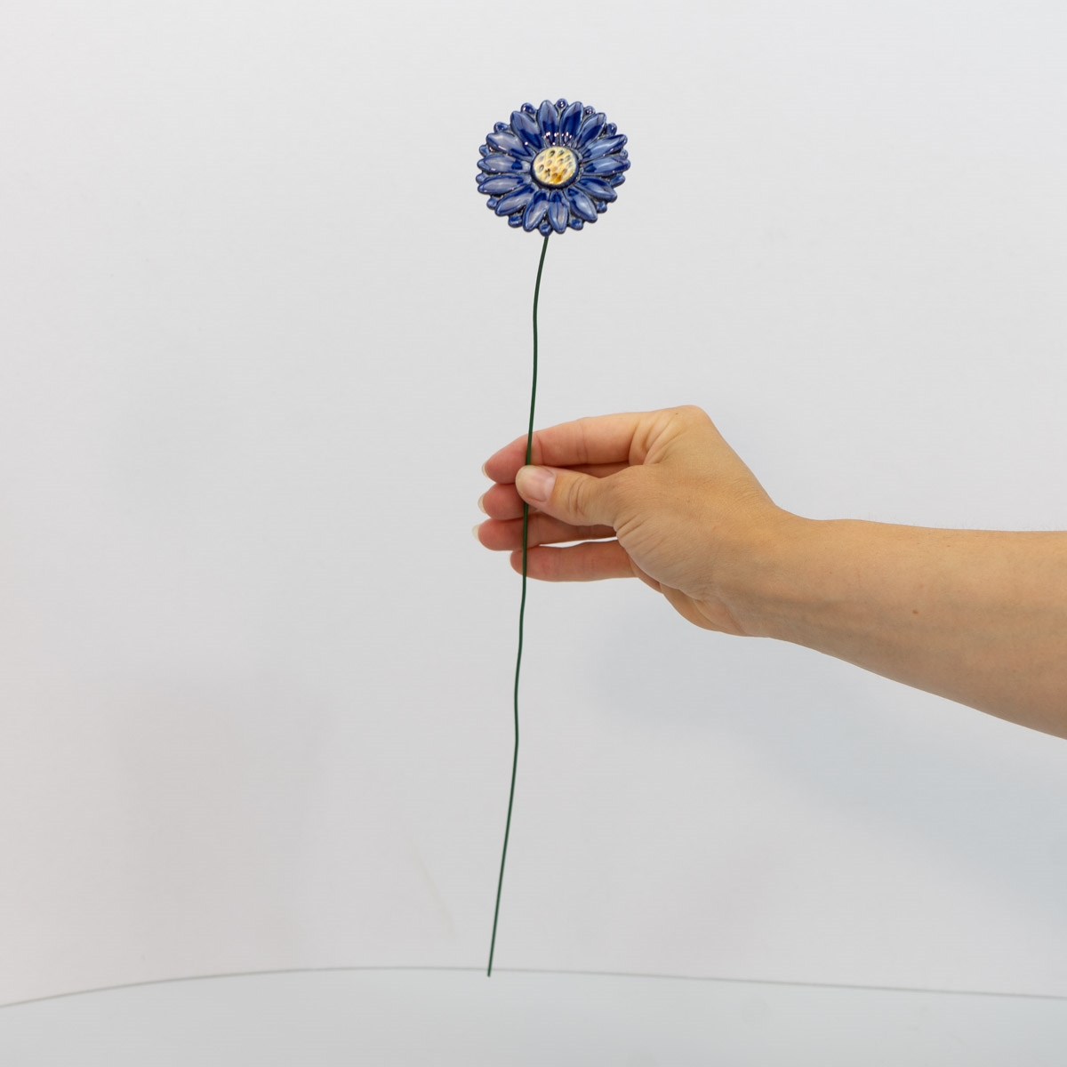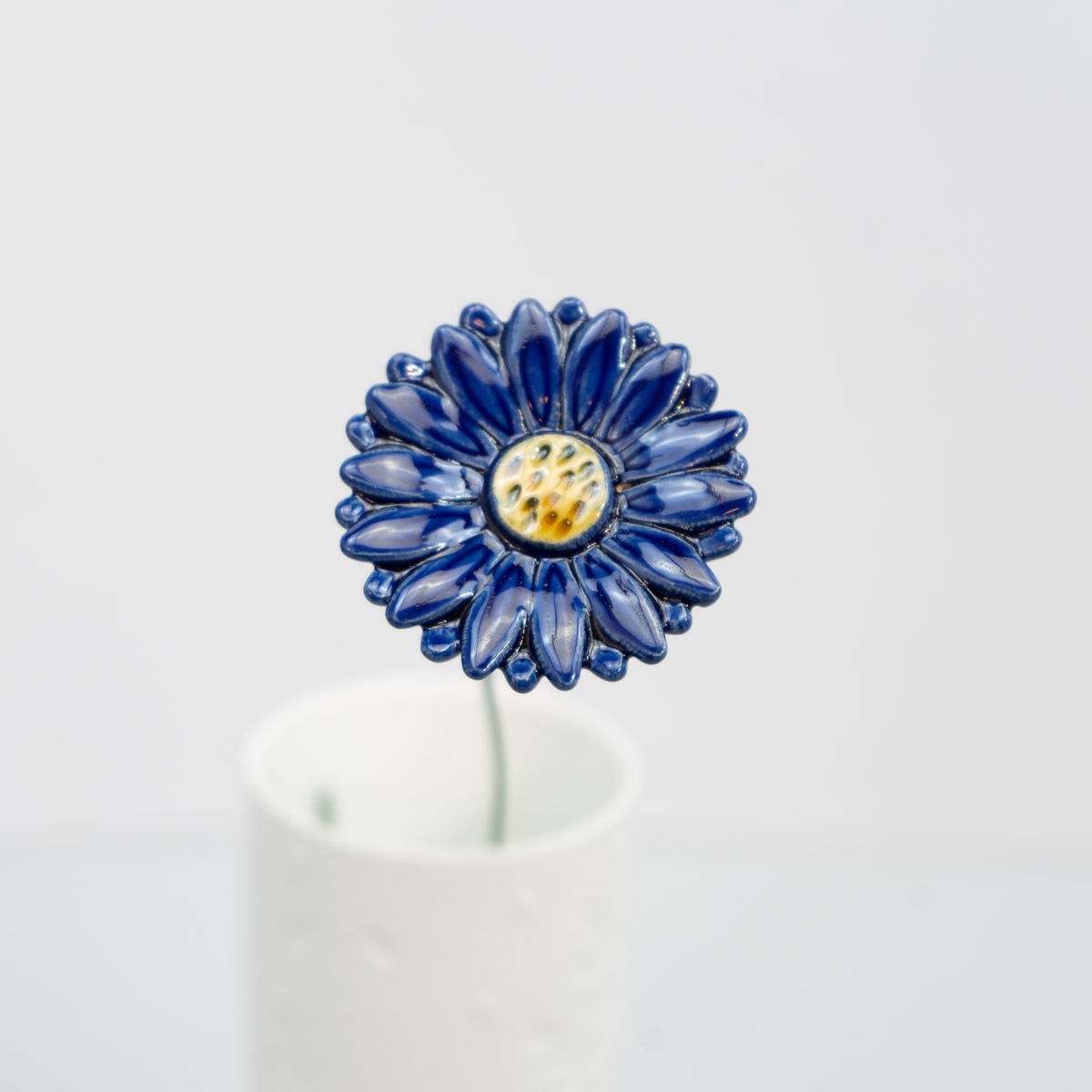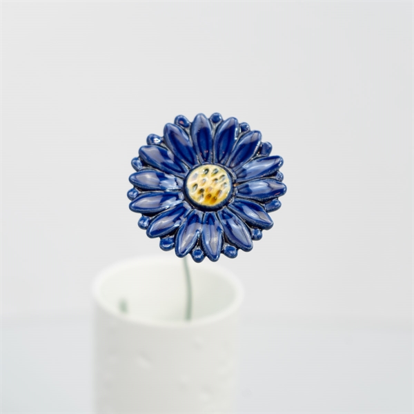 Blomst i keramik - Gerbera Ø5 cm. - Mørkeblå