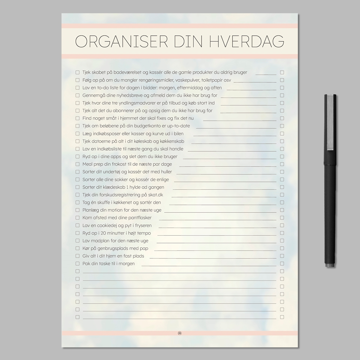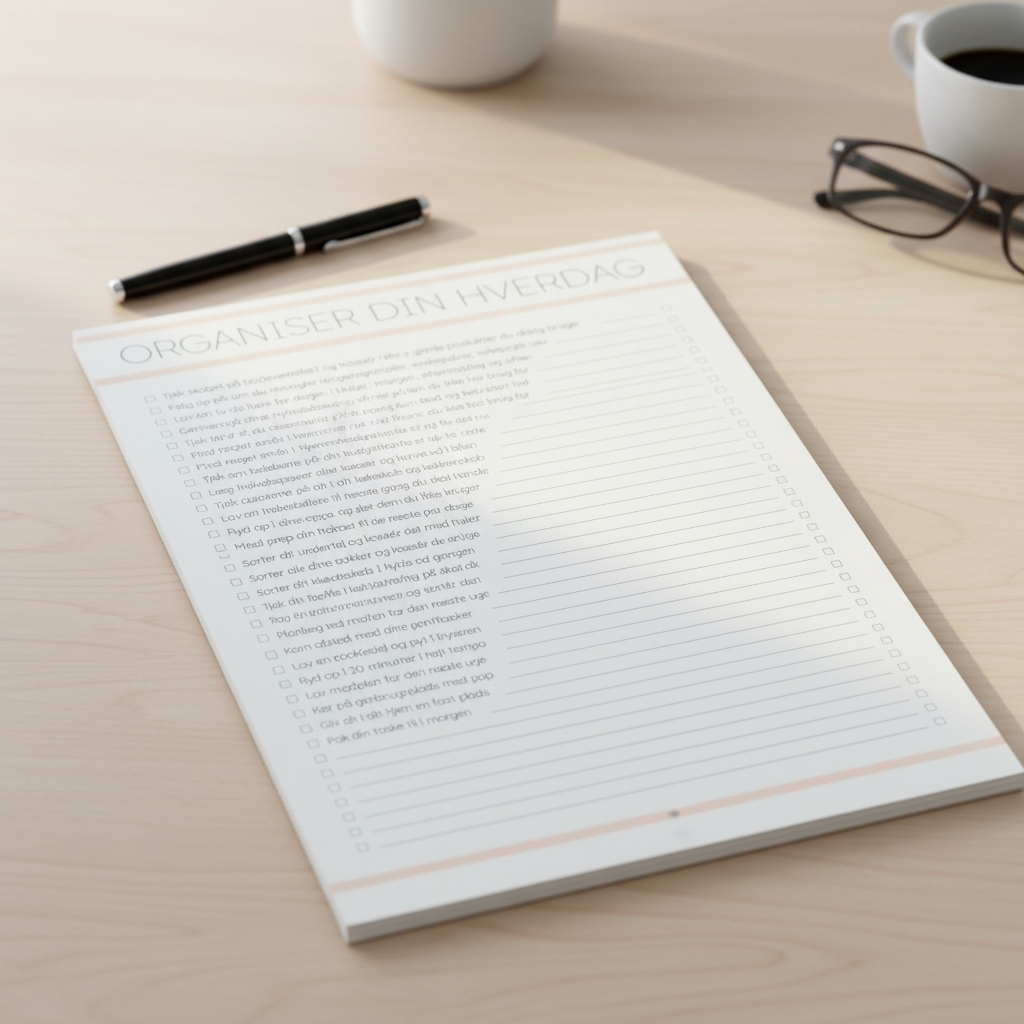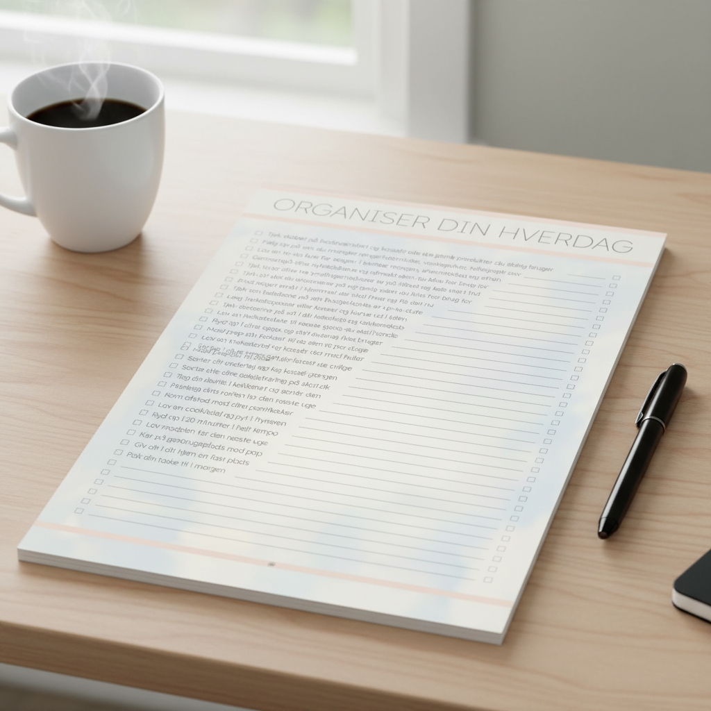 Vi har lavet denne blok som en hjælp i hverdagen, hvis du gerne vil leve mere struktureret og organiseret. Der er 26 idéer til at organisere din hverdag, og masser af plads til at udfylde dine egne idéer.