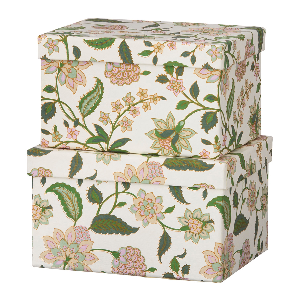 Sæt med 2 små rektangulære æsker med låg - I 2 forskellige designs i flotte farver.