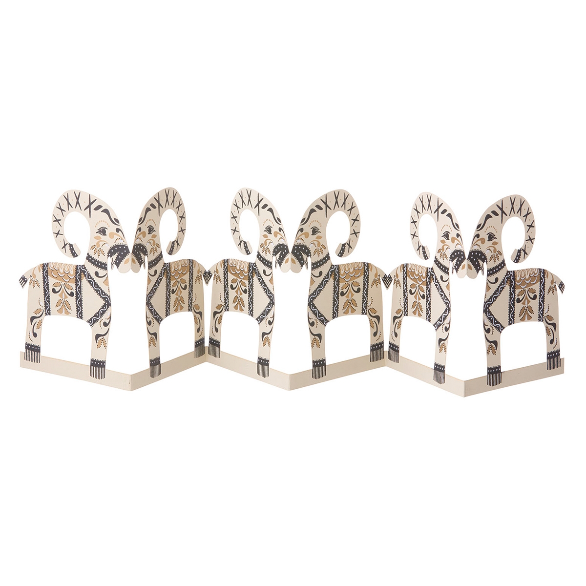 Guirlande til borddekoration fra Bungalow. Denne er i papir med motiv af skønne julebukke. Del af en serie papirpynt med julebukke.