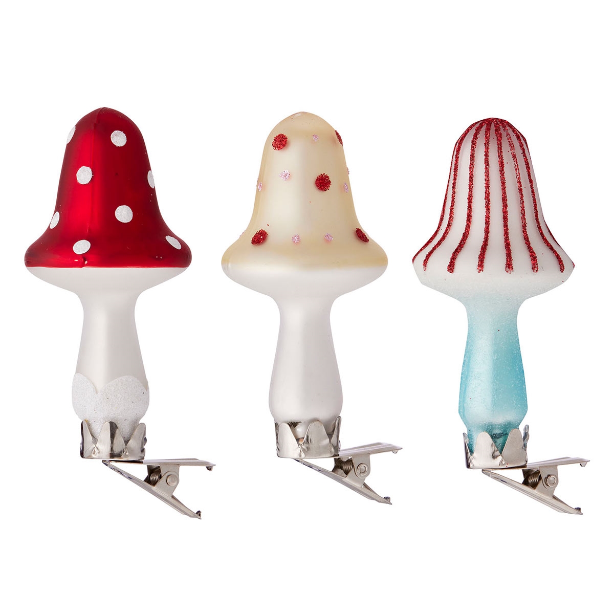 Bungalow glasjulepynt med clips - Mushrooms, sæt af 3 stk - Multi