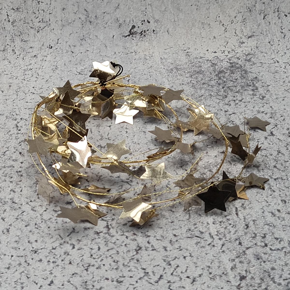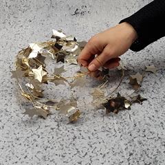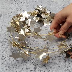 Bungalow guirlanden er lavet i metaltråd med blanke guld stjerne på.