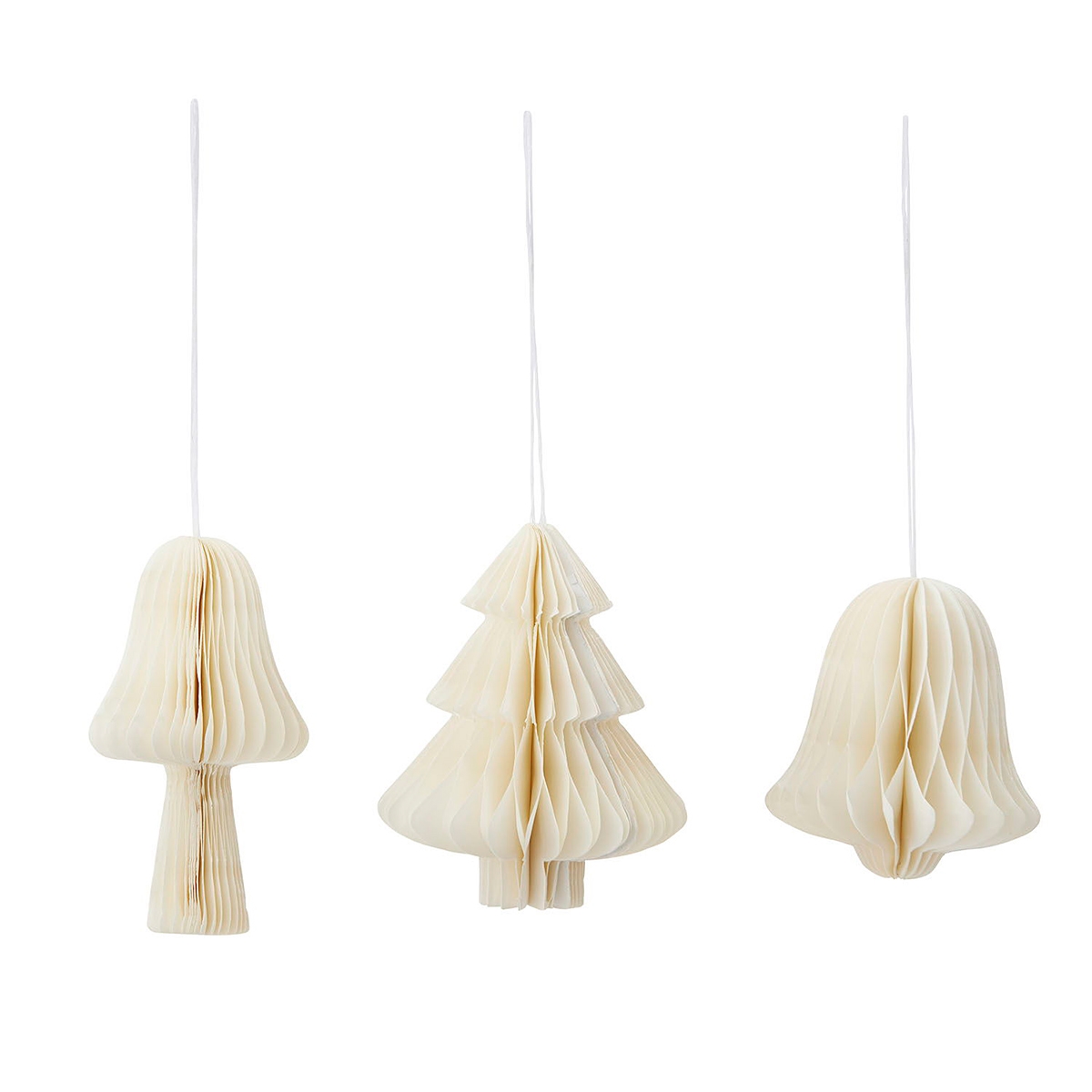 3 stk. cremefarvede ophæng i honeycomb papir fra Bungalow.