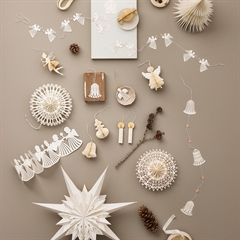 Del af Bungalows omfattende serie af hyggeligt papir julepynt lavet med sirlige detaljer og sans for hygge.
