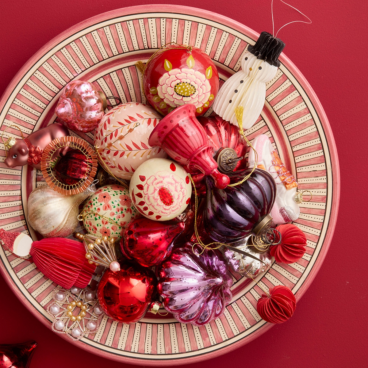 Bungalow julekugler i æske. Seraphim Ruby. Pk med 4 stk.