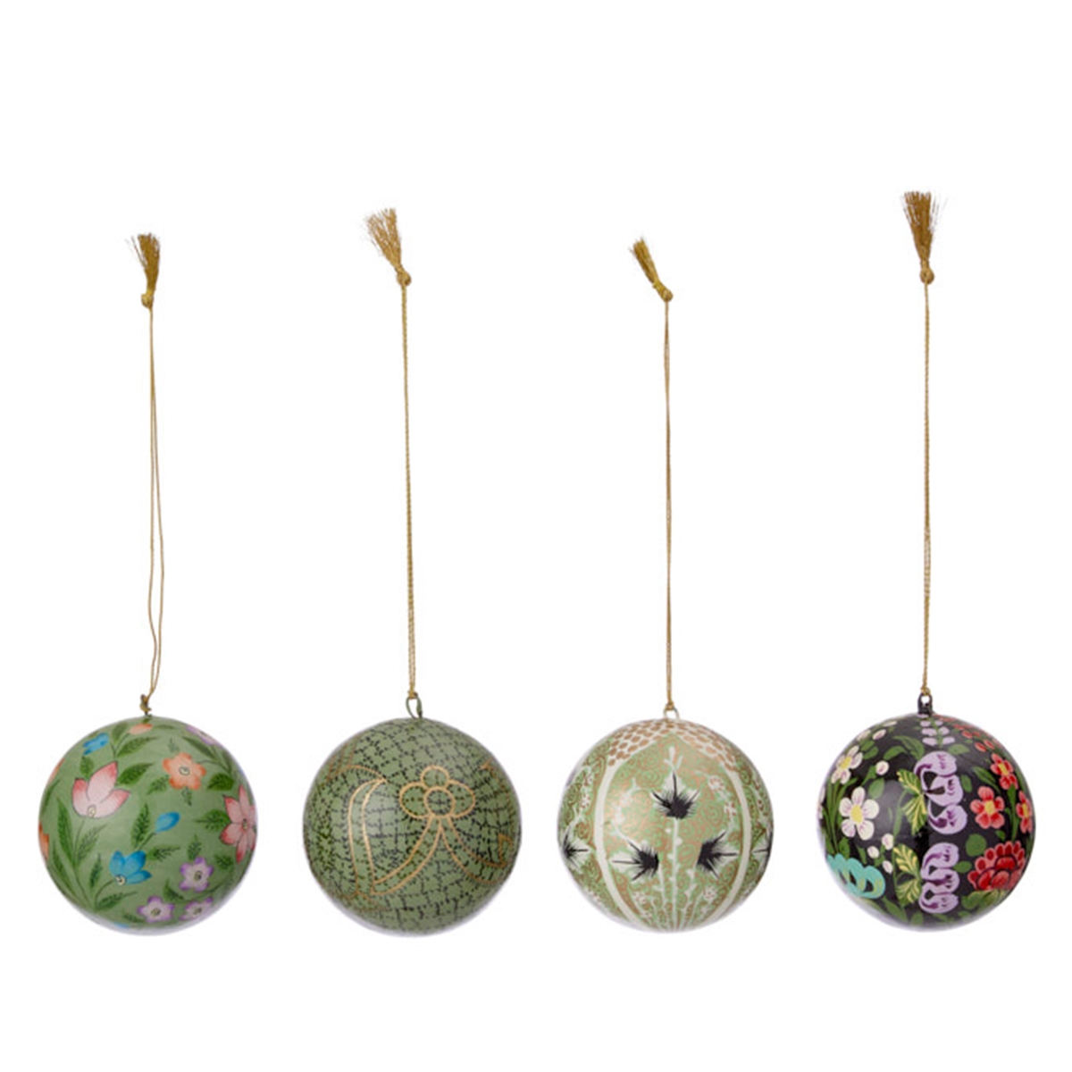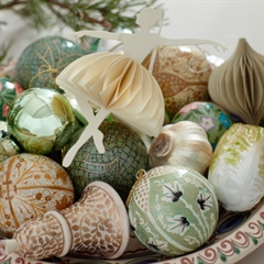 De smukke julekugler fra Bungalow er håndlavet i papmaché med håndmalet mønster.