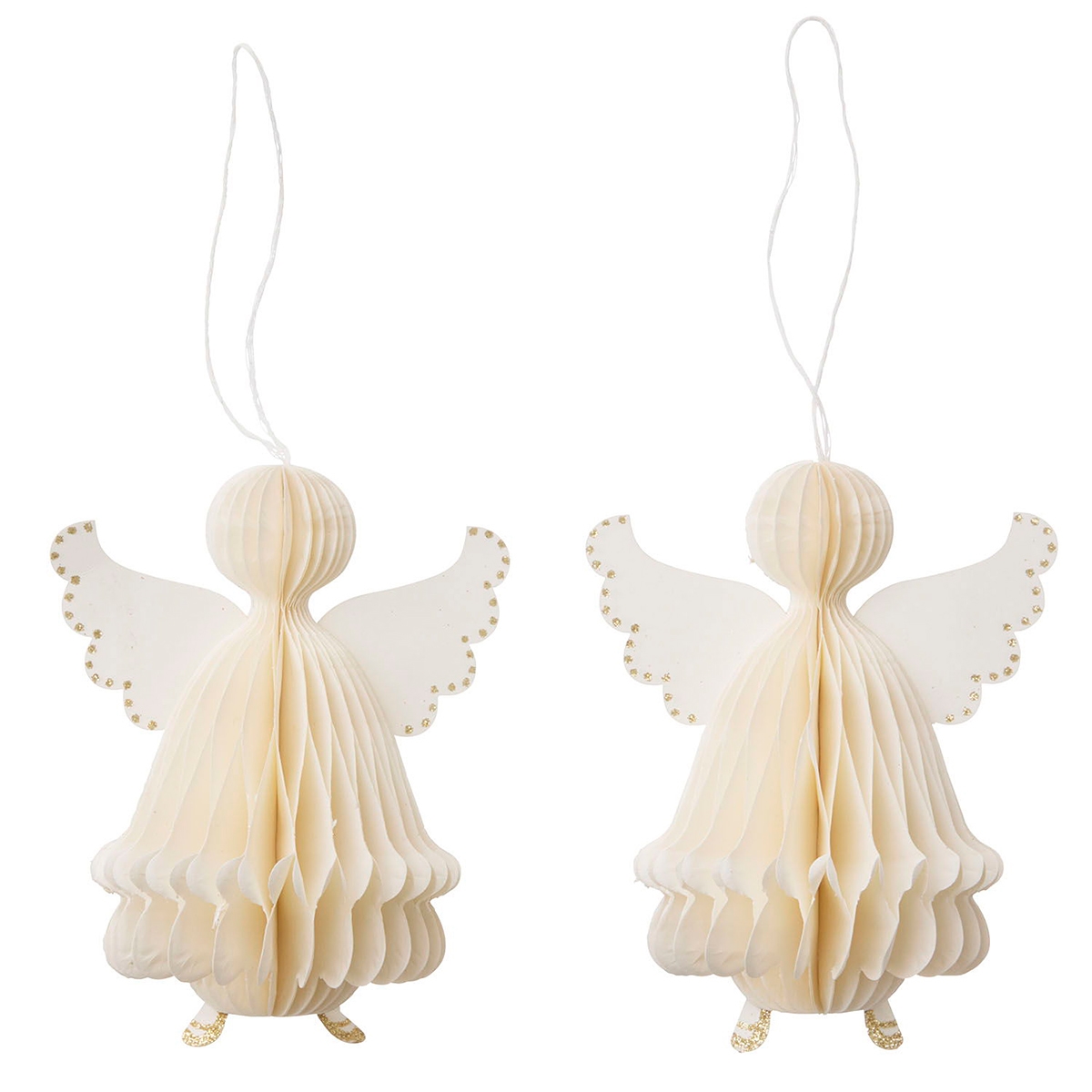 Der er 2 stk. honeycomb engle i en pakke. Med fine glimmerdetaljer på skoene og vingerne.