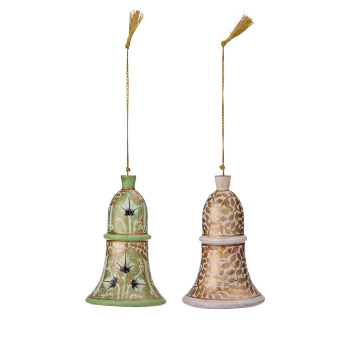 2 smukke håndmalede klokkeformede juleophæng til dekoration i hjemmet eller på juletræet.