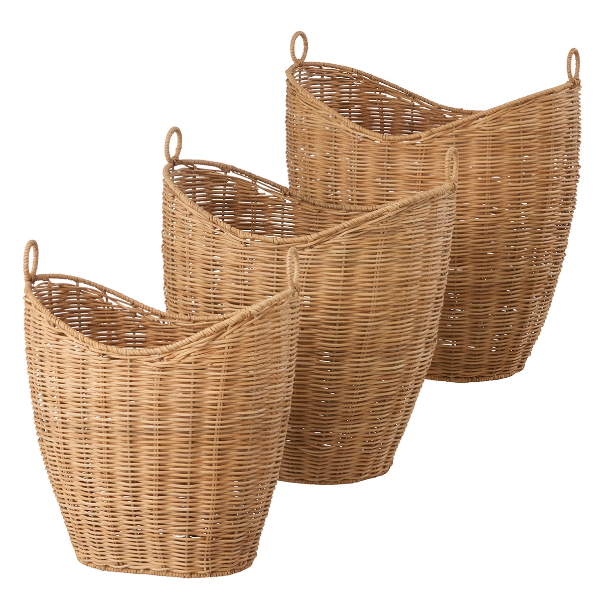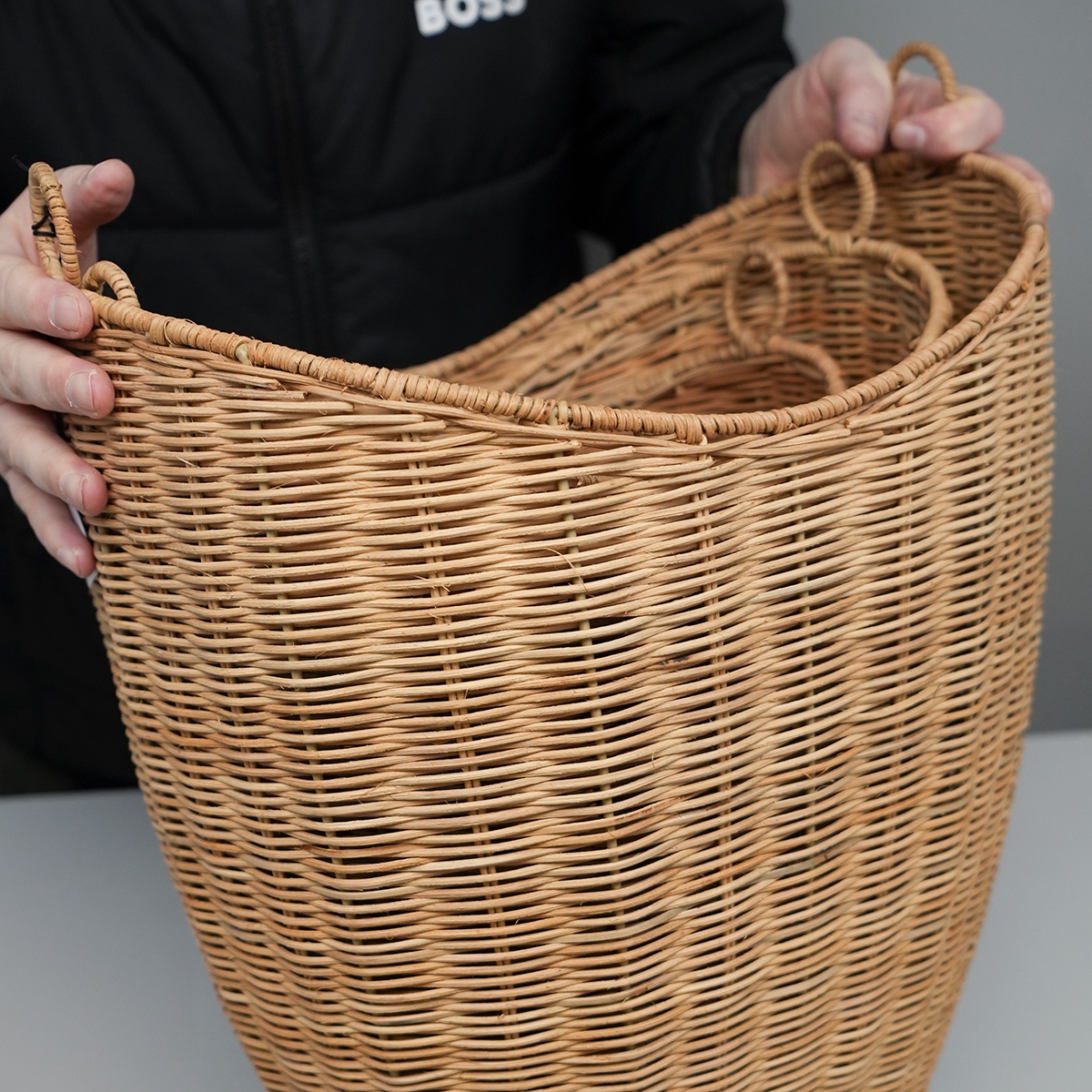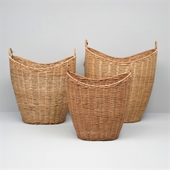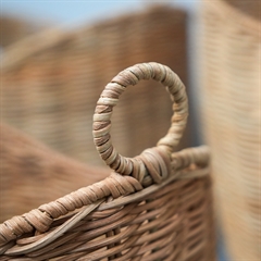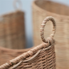 Sæt med 3 stk. opbevaringskurve i rattan fra Bungalow. Kurve til opbevaring overalt i boligen. Mellemstørrelse kurve til opbevaring. Den store kan bruges til gavepapir, den midterste til toiletruller og den mindste til huer og vanter.