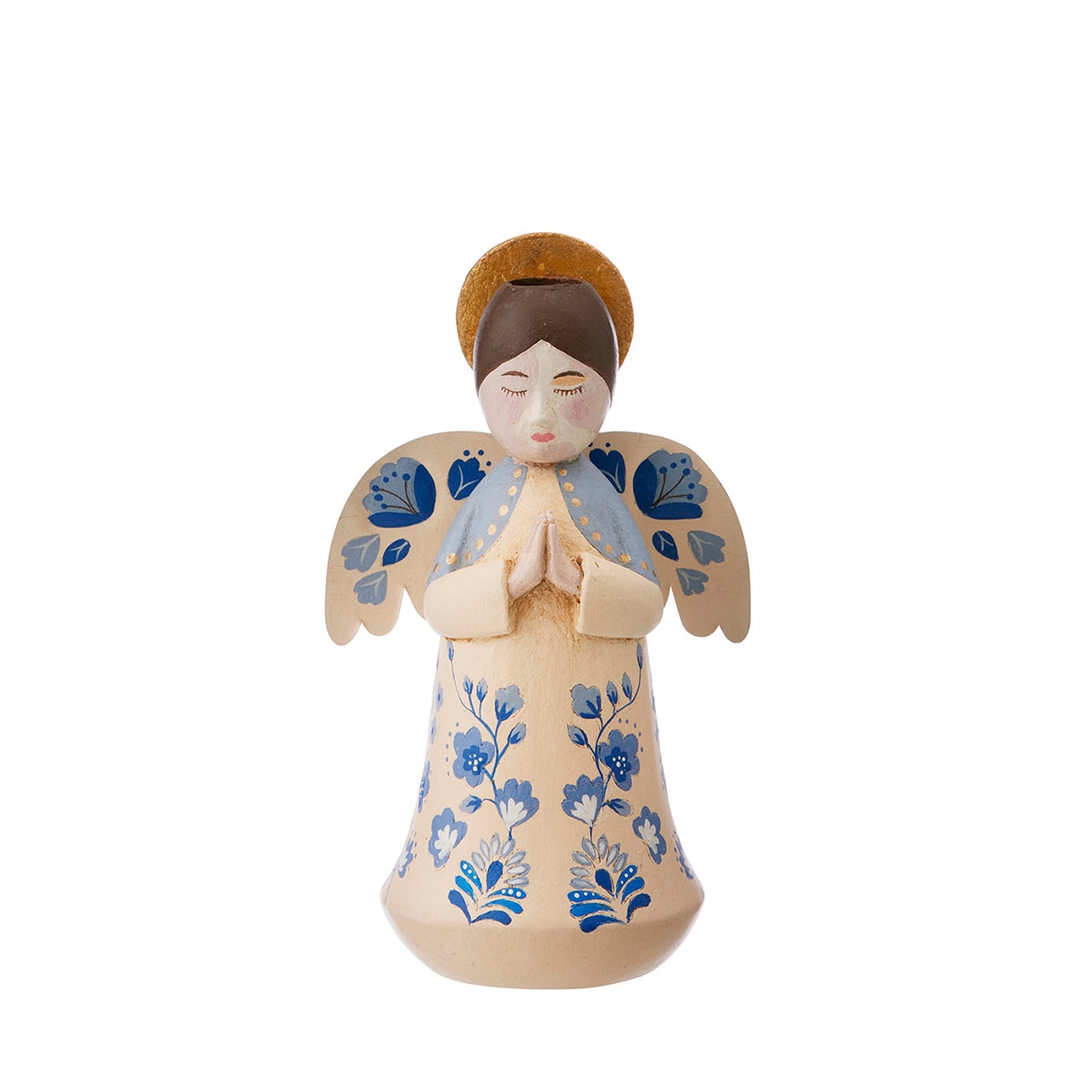 Udformet som en engel der holder et lys i et antikt look. Passer til små juletræslys.