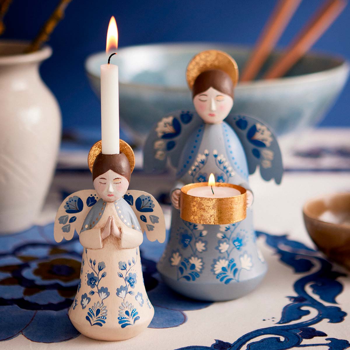 Engel lysestage, blå