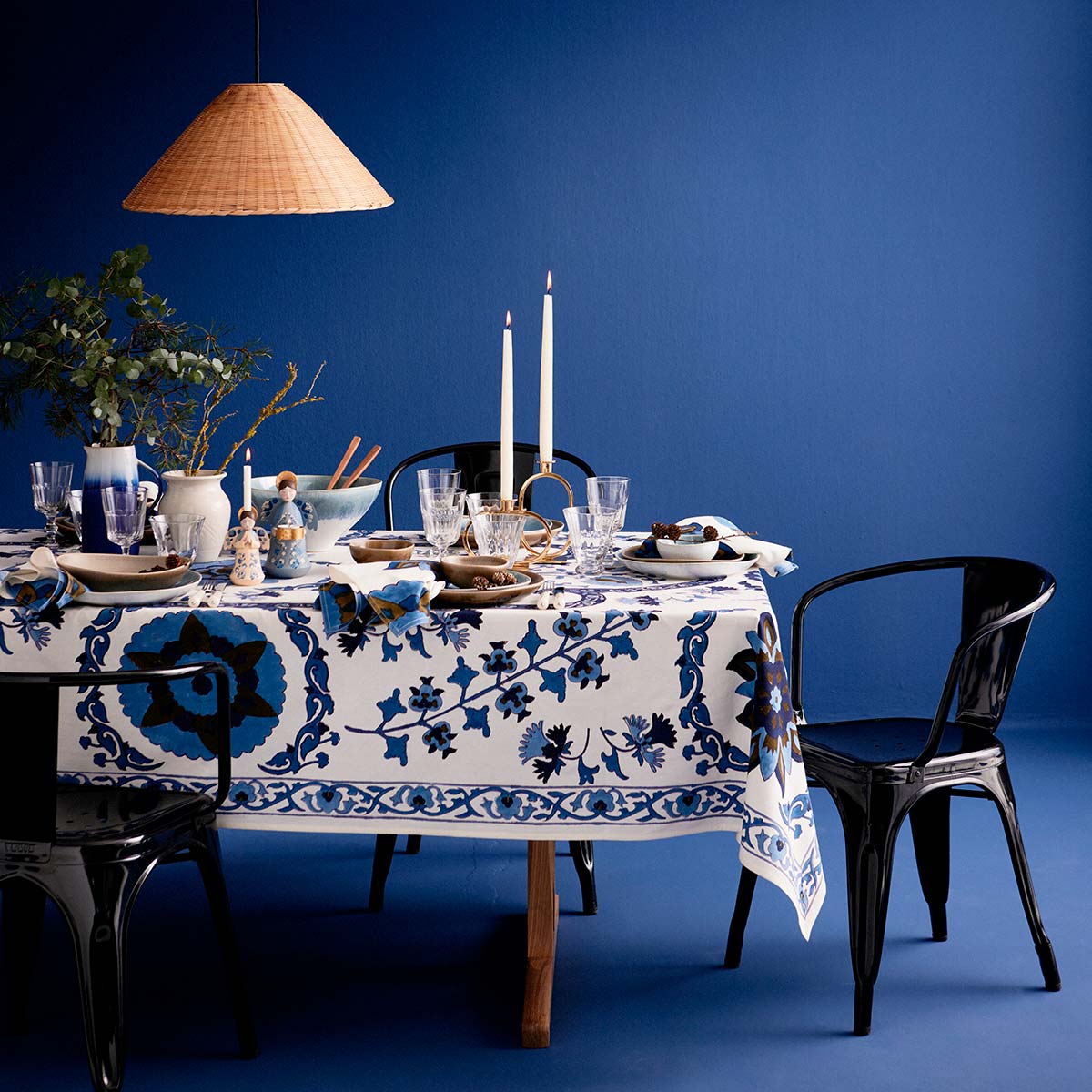 Smuk og dekorativ lysestage fra danske Bungalow i et vintage look i flotte blå farver.