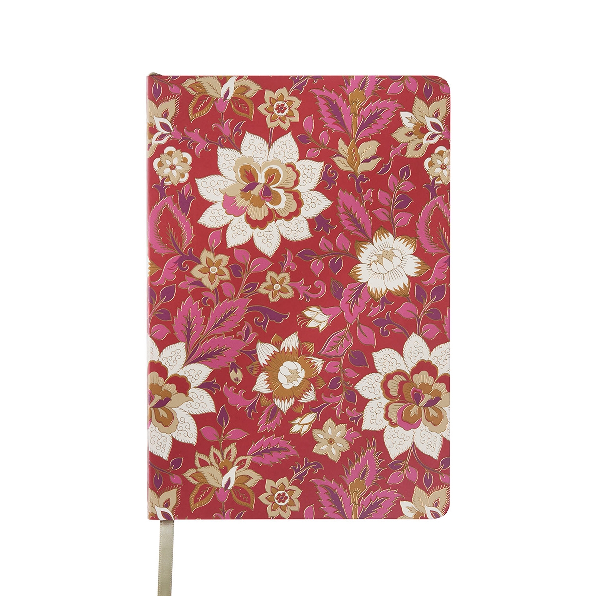 Eksklusiv notesblok fra Bungalow. Notesbogen er med cremefarvet tykt papir med linjerede sider. Med silkebånd du kan bruge som bogmærke. Omslaget er dekoreret med skønne blomster fra fra Bungalows farveunivers og siden af papiret er rødt. Omslaget er kraftigt papir (ikke hardback)