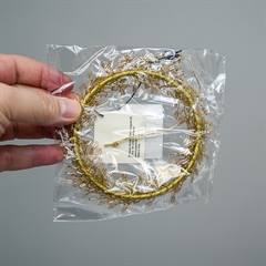 Håndlavet julepynt fra Bungalow lavet af glasperler og metal. Fra serien Clio Champagne der er en hel serie af sirligt dekoreret julepynt håndlavet i Indien af glasperler og metal. Denne forestiller en krans.