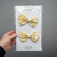 Bungalow Sløjfe i papir - Mara, Cream/Gold, 12 cm. Pakke med 2 stk