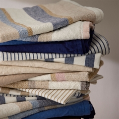 De fine viskestykker er lavet i 50% bomuld/ 50% Hør. Vaskes ved 40 grader. Tørretumbler anbefales ikke.