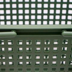 Kurv i kraftig mørkegrøn plast til opbevaring i hjemmet. Dette er den str. vi kalder for "Large"