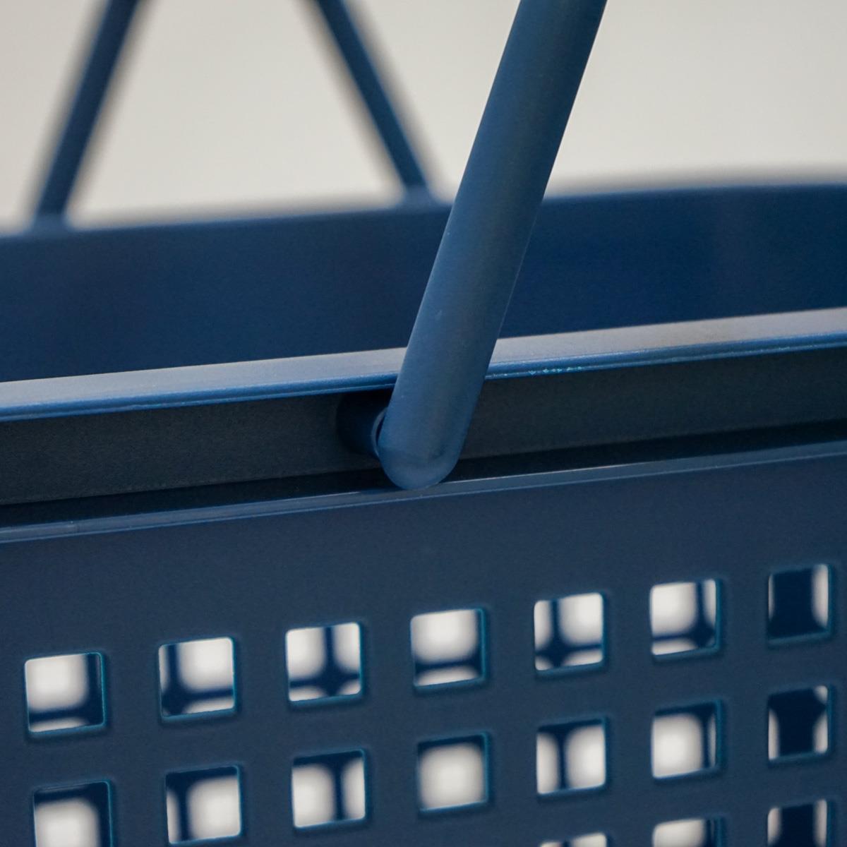 Kurv i kraftig navyblå plast til opbevaring i hjemmet. Dette er den str. vi kalder for "Medium"