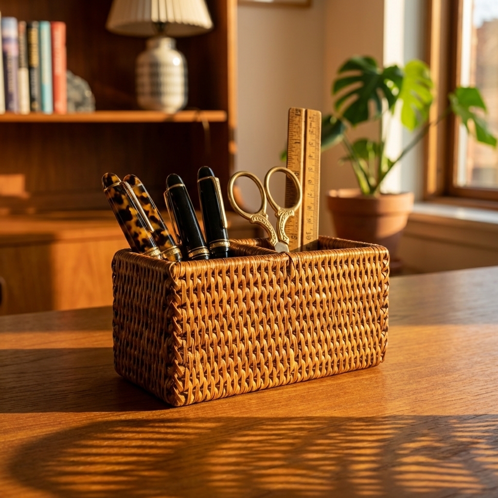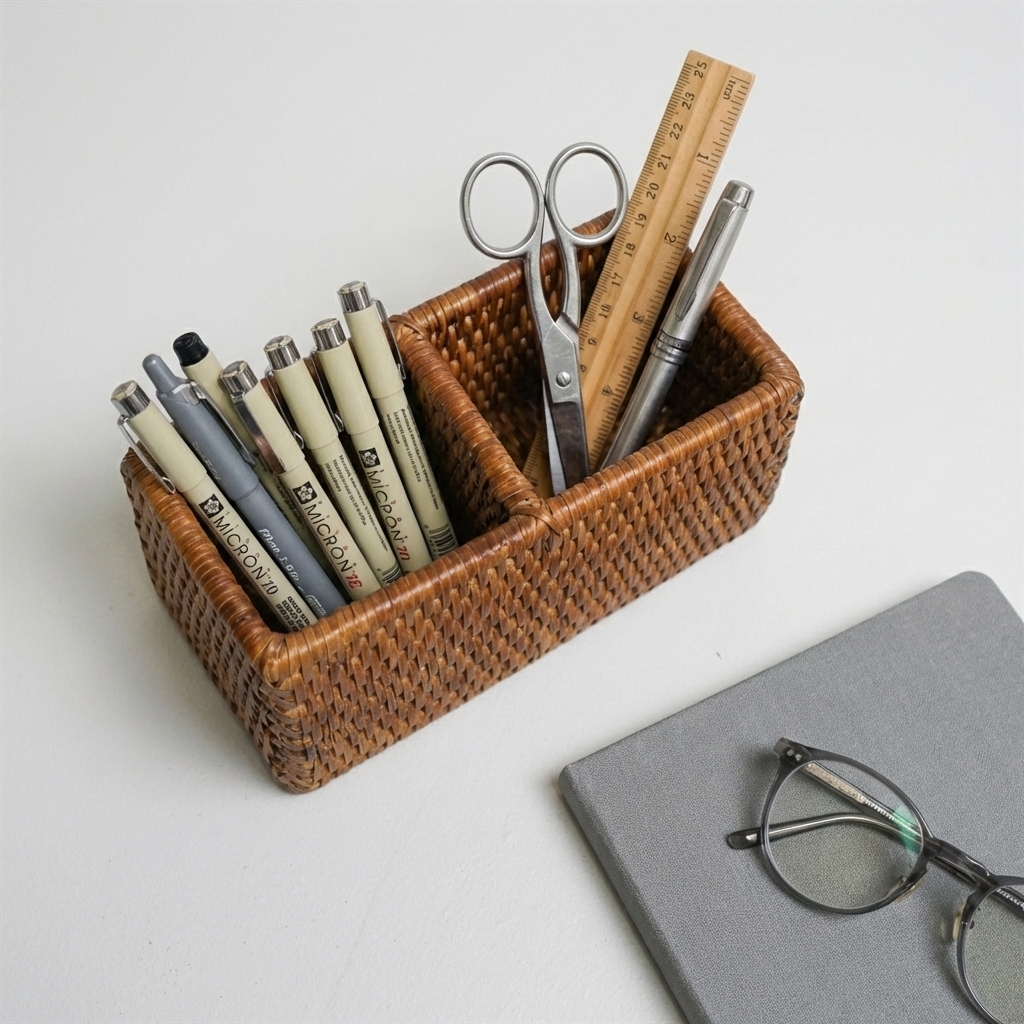 Charmille Firkantet Holder med 2 rum i Rattan. Honey