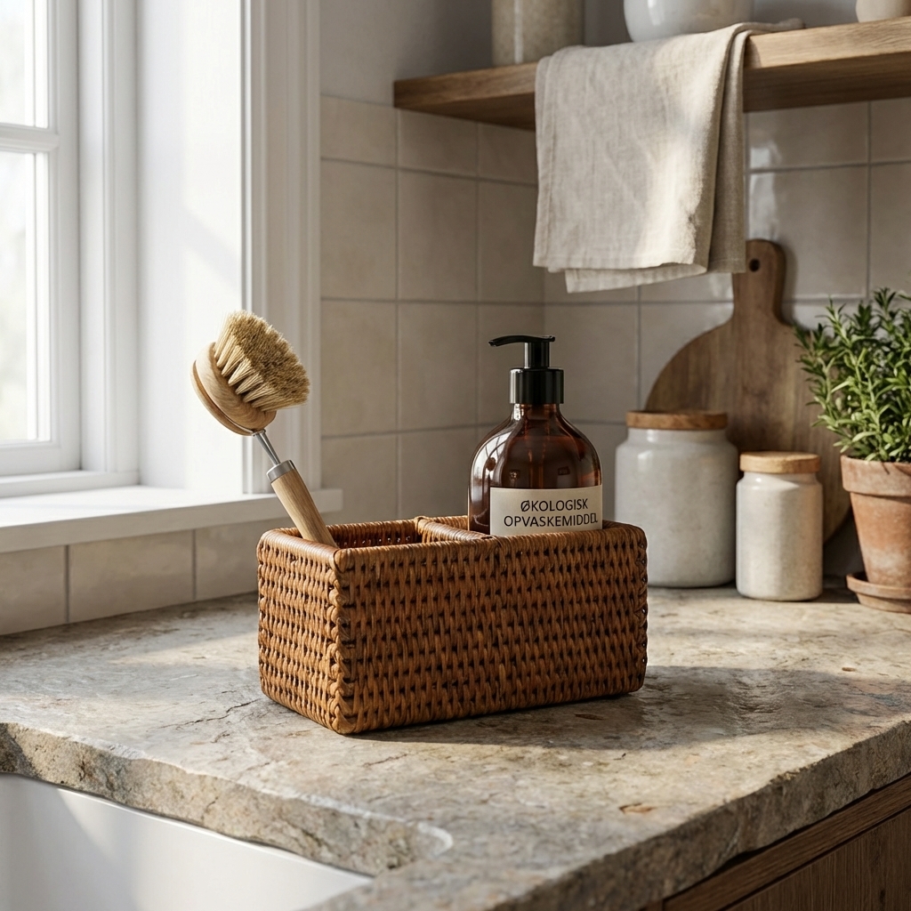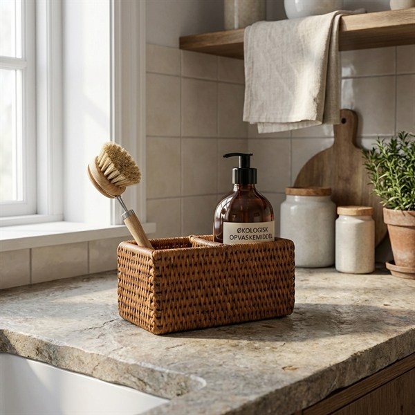 Charmille holder i naturmaterialet rattan - her i den honningfarvede version. Holderen kan bruges til bestik, opvasketilbehør, olie/eddike, sæbedispenser og lotion eller som penneholder - mulighederne er mange.