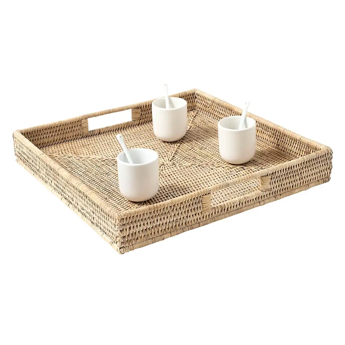 Håndlavet serveringsbakke med håndtag i begge sider. Fremstillet af hvidt rattan af dygtige håndværkere.