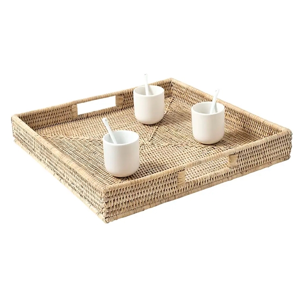 Charmille Firkantet Serveringsbakke i Rattan. Hvid