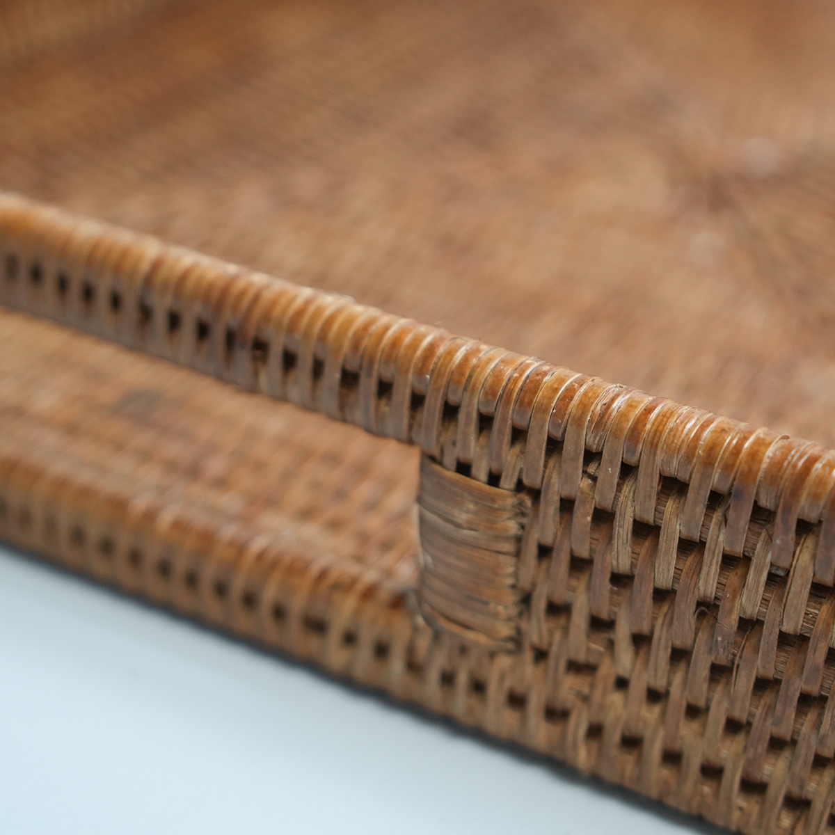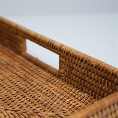 Håndlavet serveringsbakke med håndtag i begge sider. Fremstillet af honningfarvet rattan af dygtige håndværkere.