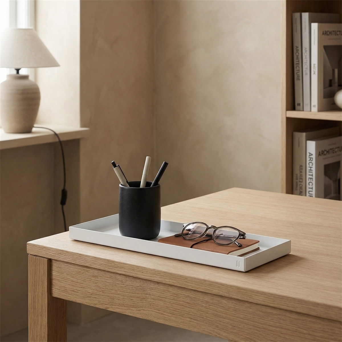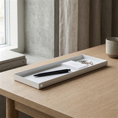 Fra vores egen serie af bakker der fås i både sort og hvid. Bakken her er god til vaser og lysestager eller parfumer på badeværelset.