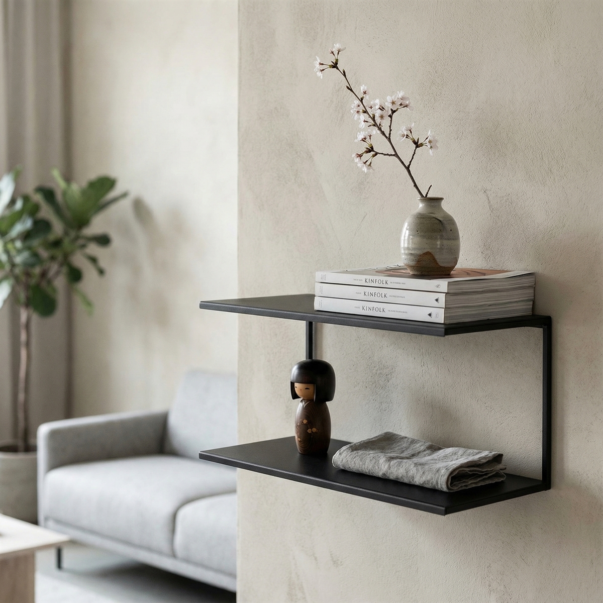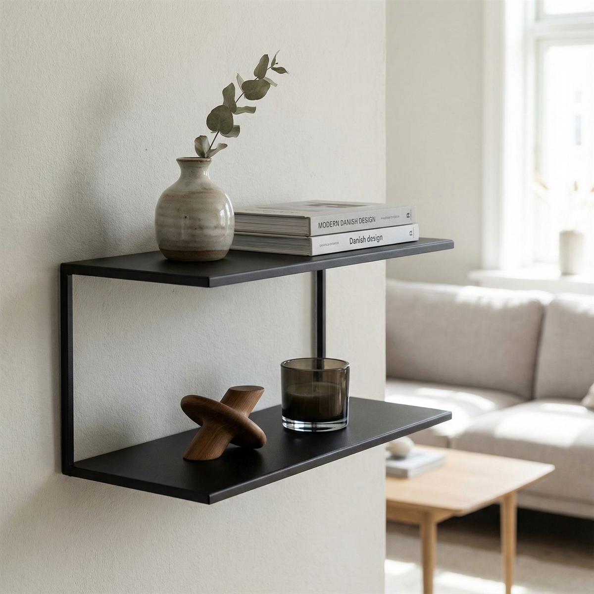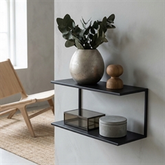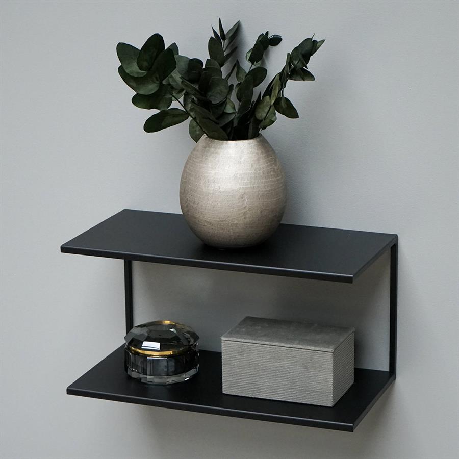 Dobbelthylde fra Como serien i en bred udgave i sort metal. Brug den til pynteting i stuen eller som natbord i soveværelset.