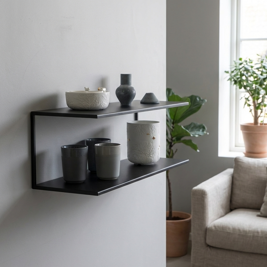 Stor dobbelthylde i pulverlakeret sort metal - 60 cm bred