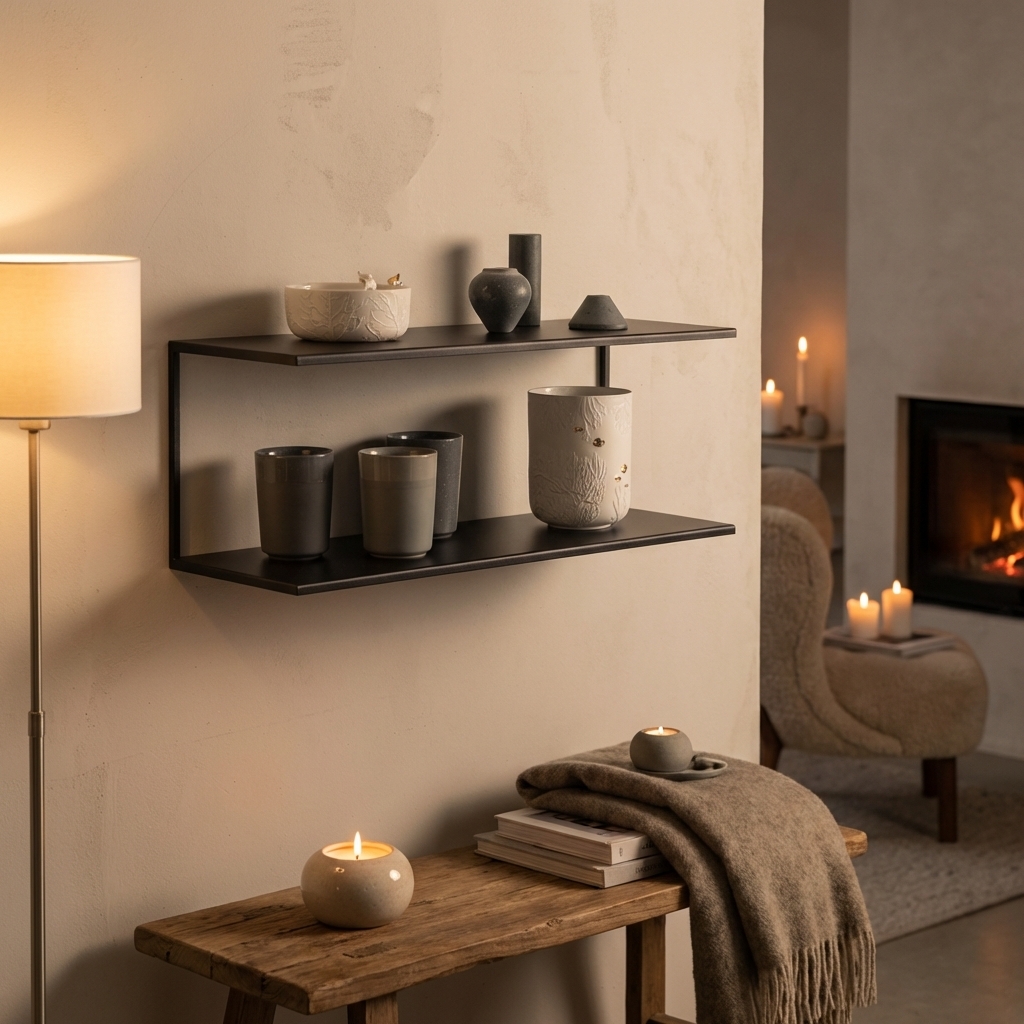 EN stor og klassisk, stilren hylde til pynteting i stuen, i køkkenet, på værelset og meget mere.