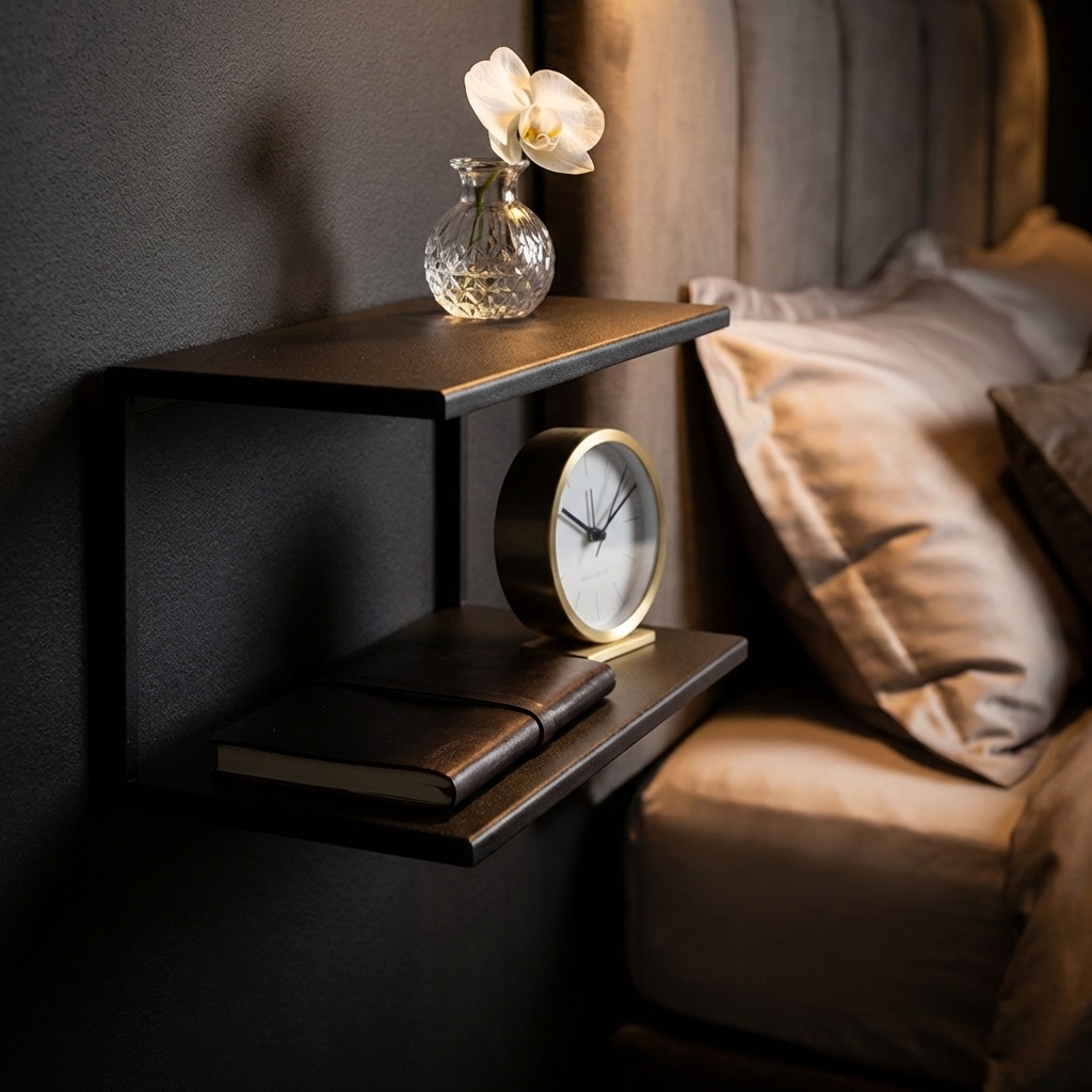 Sengebordet fremstillet i robust stål og med en smuk, pulverlakeret mat sort finish.