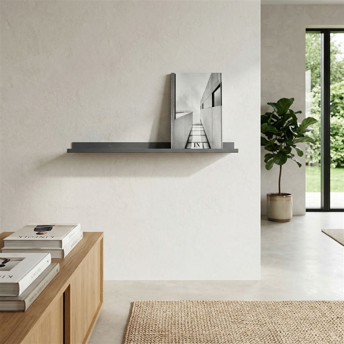 Gallerihylde i mat grå metal fra vores metalserie Como.