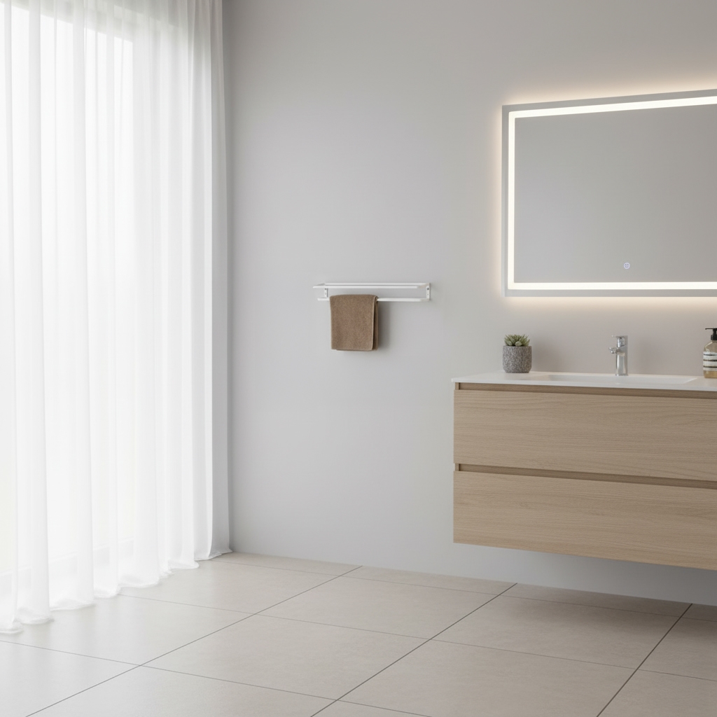 Simpel, stilren og elegant håndklædeholder til vægophæng på badeværelset eller i bryggerset til håndklæde.