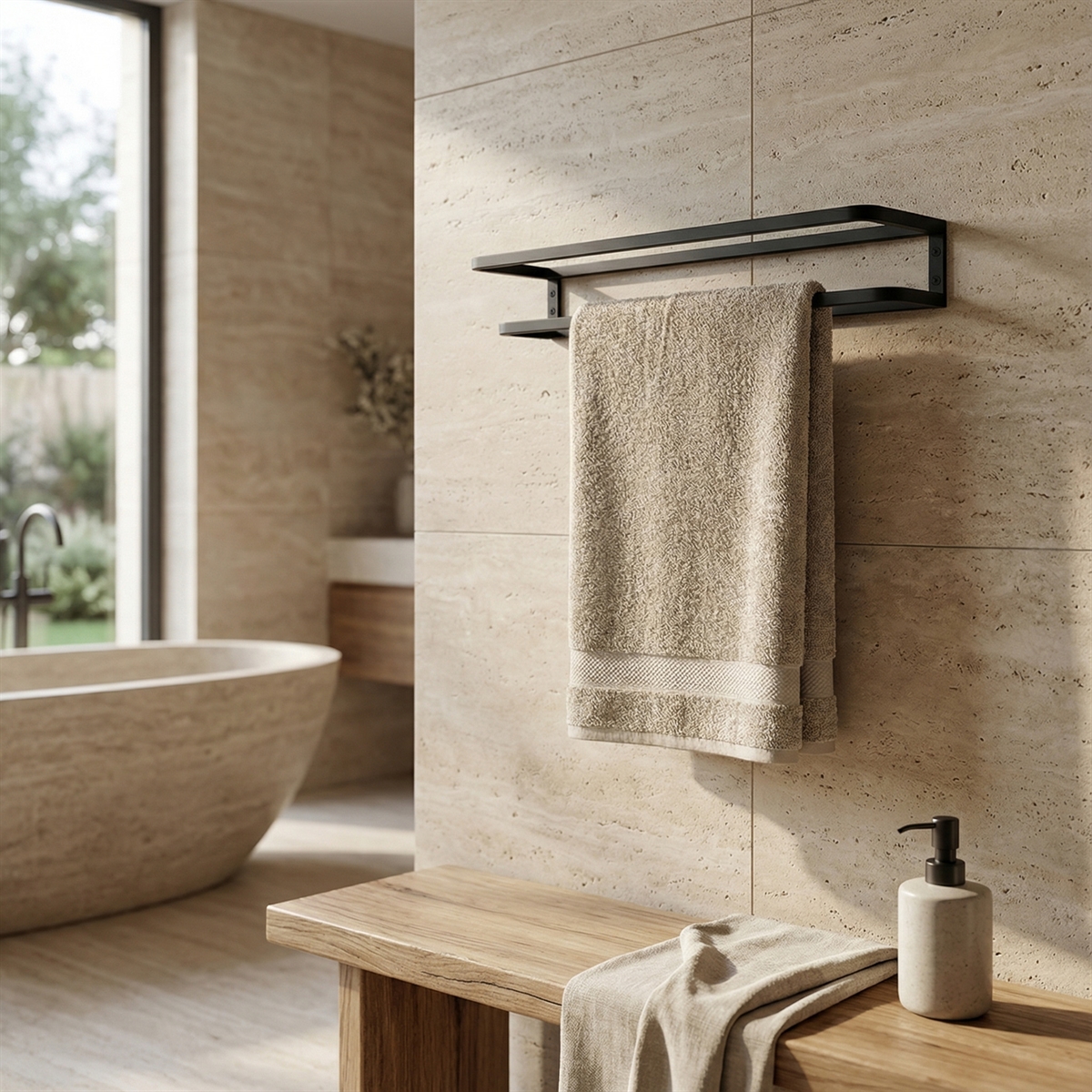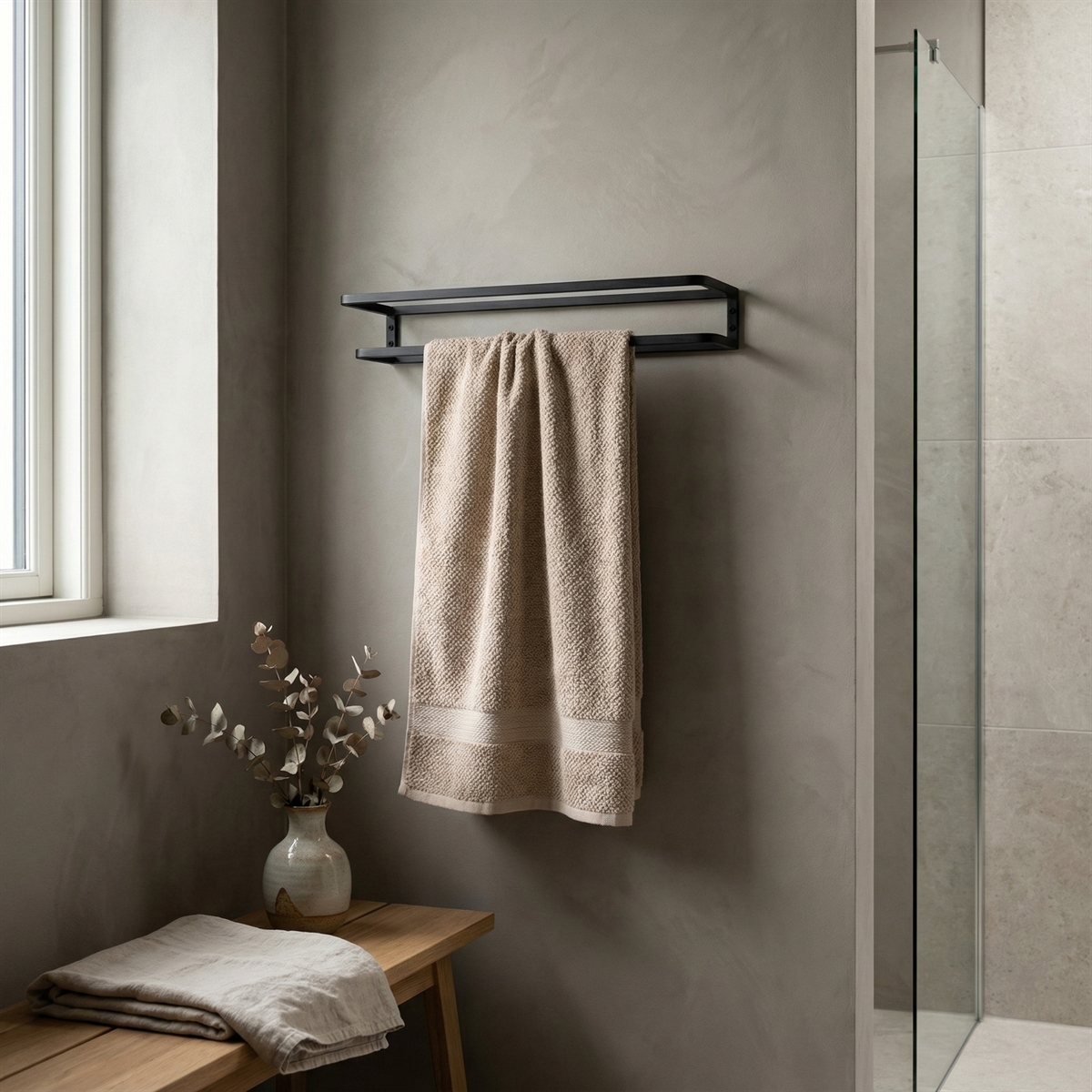 Håndklædeholder til 2 gæstehåndklæder - 40 cm. i sort