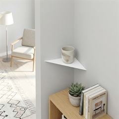 Den smarte hjørnehylde her i str. small er helt perfekt til små hjørner i hjemmet, der trænger til lidt pynt. Hjørnehylden gør det også nemmere at udnytte pladsen i hjemmet til opbevaring.