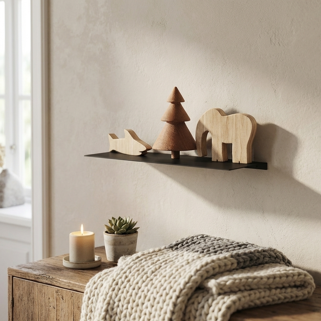 Væghylden er lavet i metal med en mat sort pulverlakering og måler 37,5 x 15 cm.