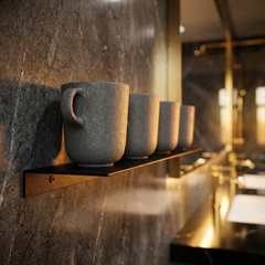 Væghylden er lavet i metal med en mat sort pulverlakering og måler 50 x 10 cm.