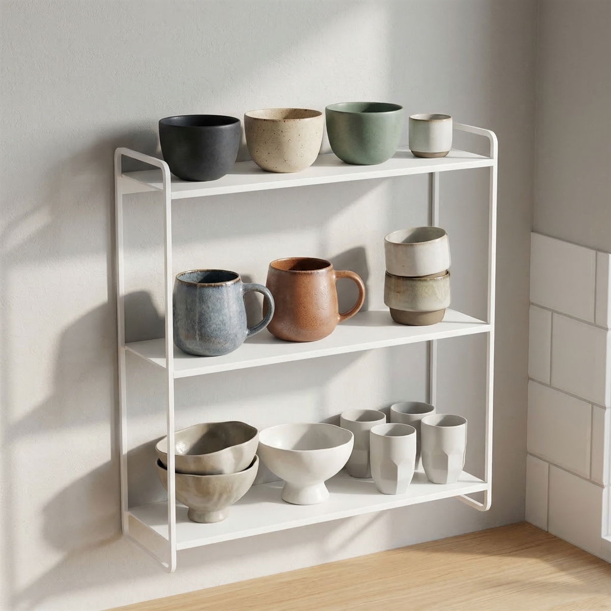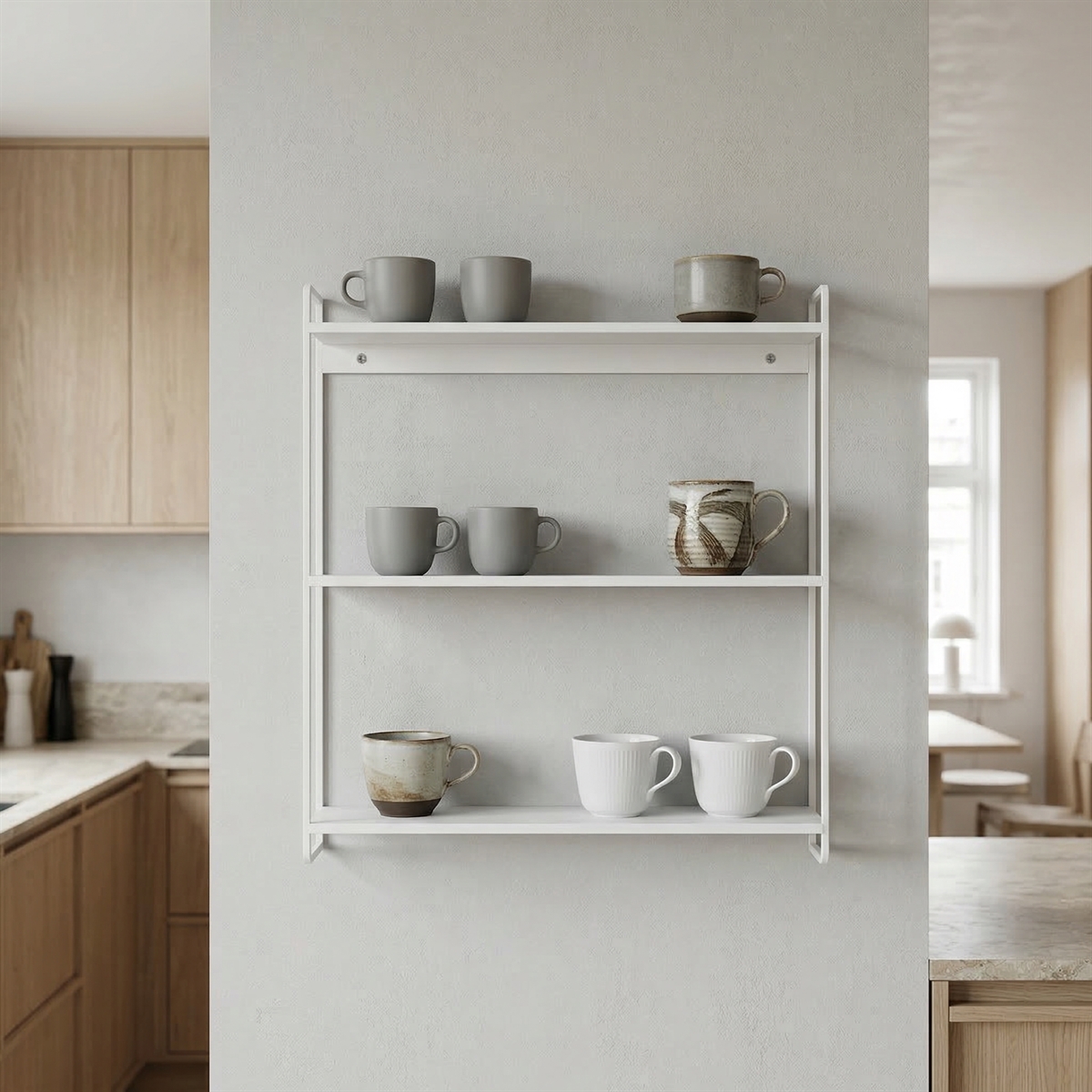 Den lille Maggie hylde er helt perfekt til kopper, krydderier og små krukker i køkkenet.