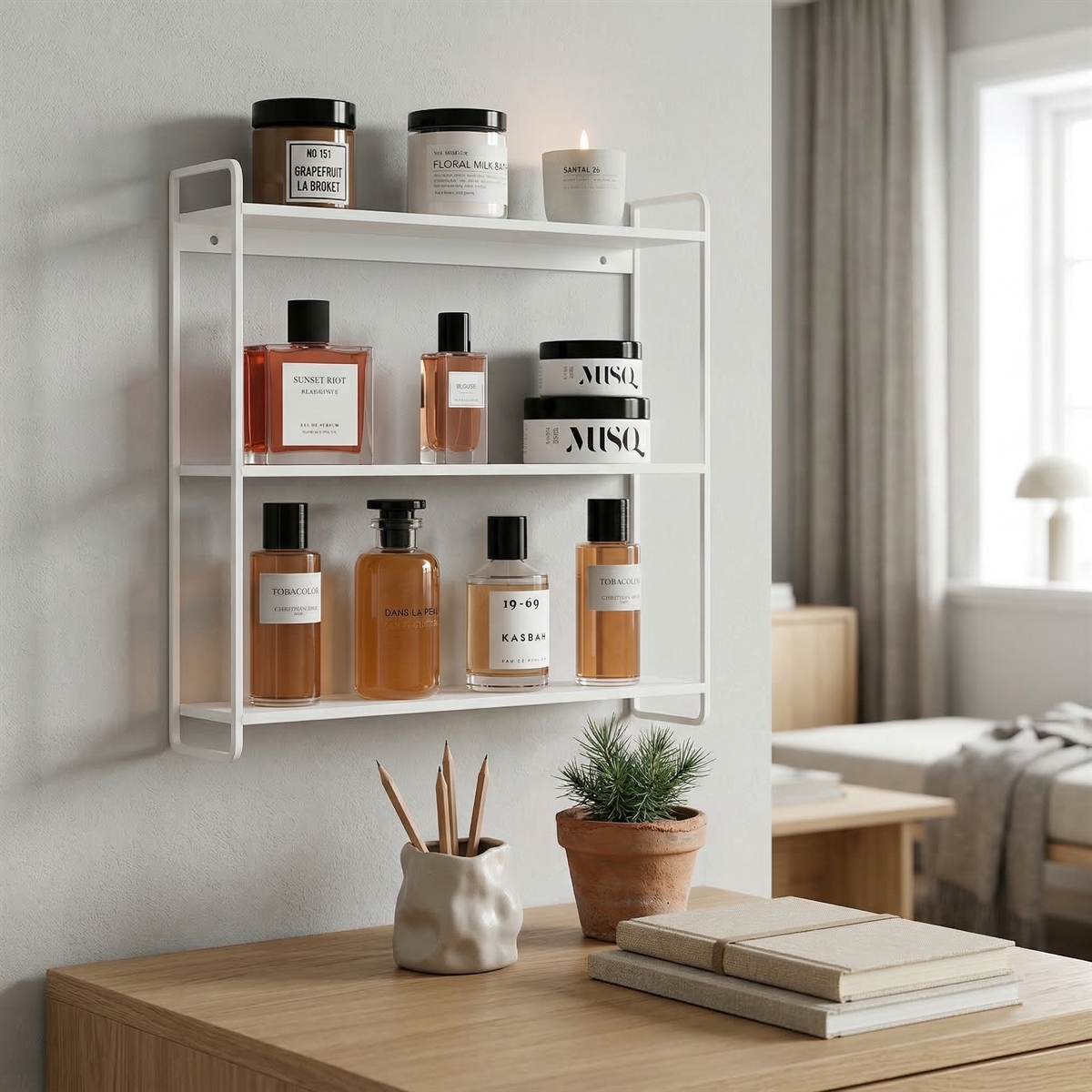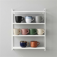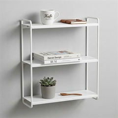 En stilren og klassisk hvid reol til ophæng på væggen.