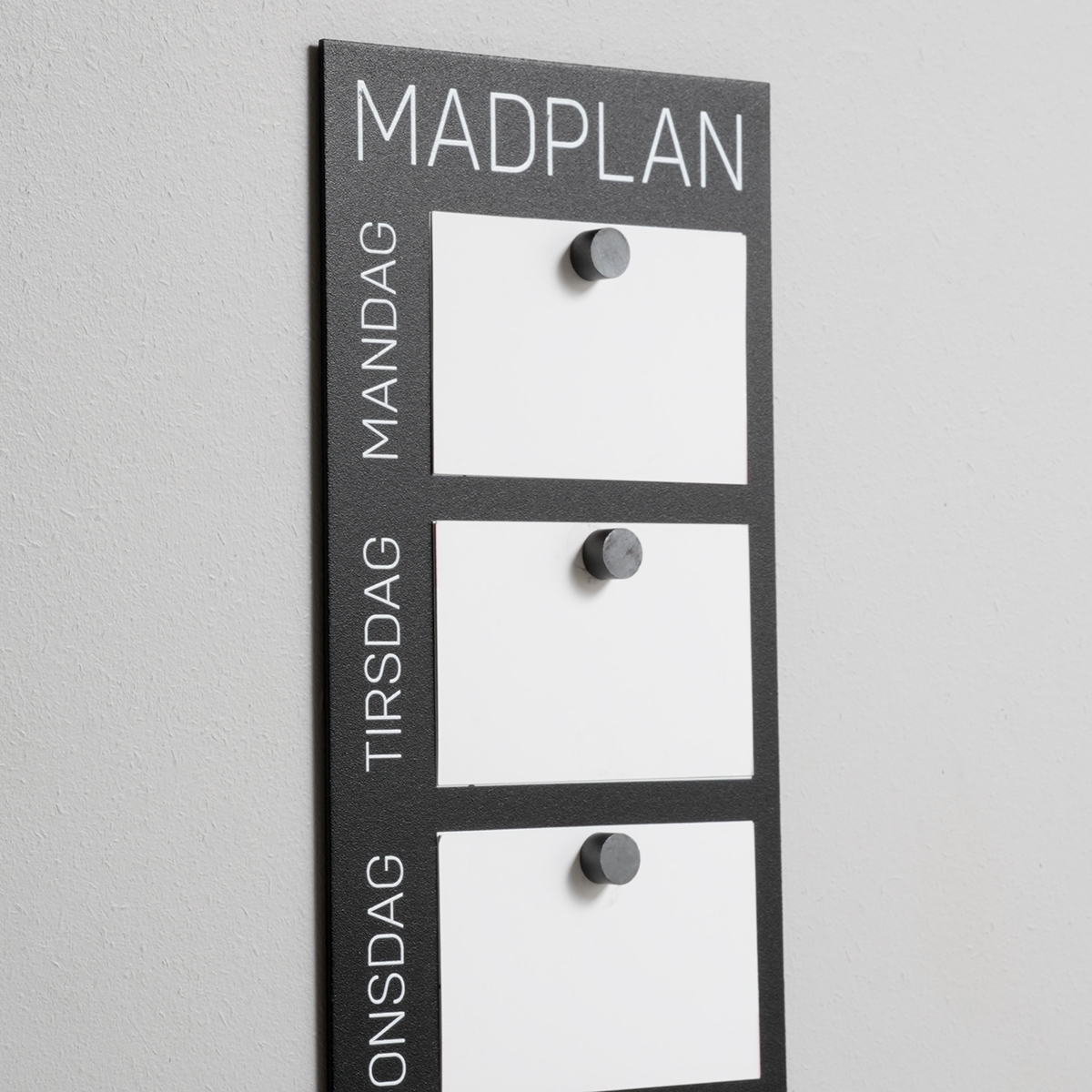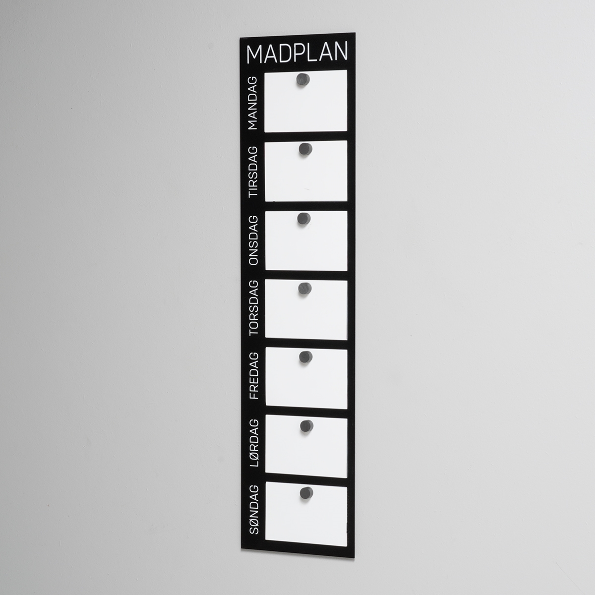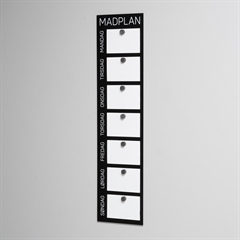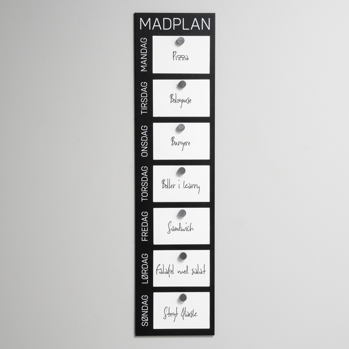 Hæng madplanen op på væggen og sæt madkortene på tavlens 7 dage med de medfølgende magneter.