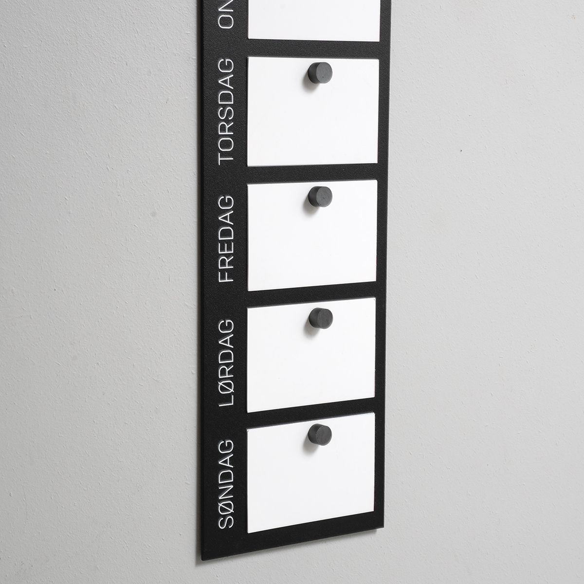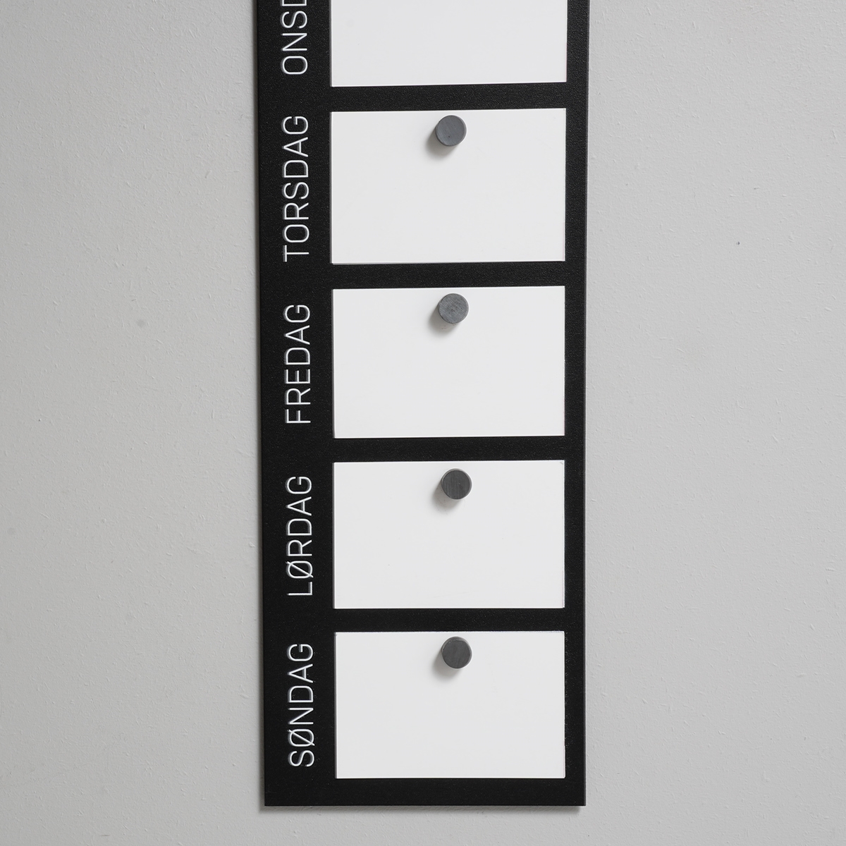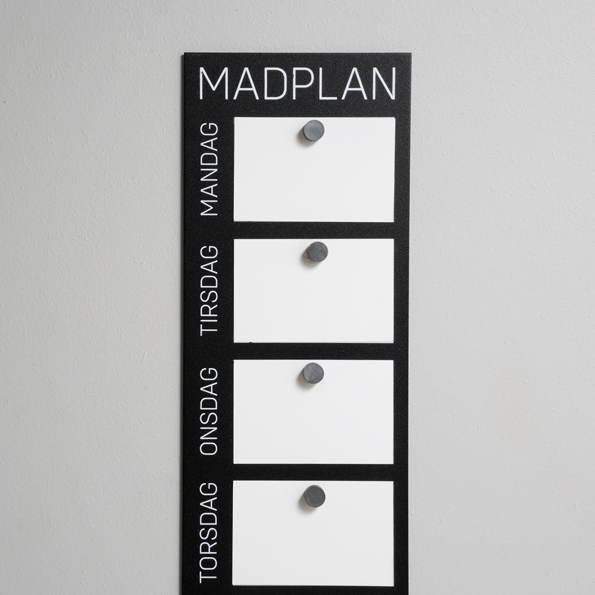 Hæng madplanen op på væggen og sæt madkortene på tavlens 7 dage med de medfølgende magneter.