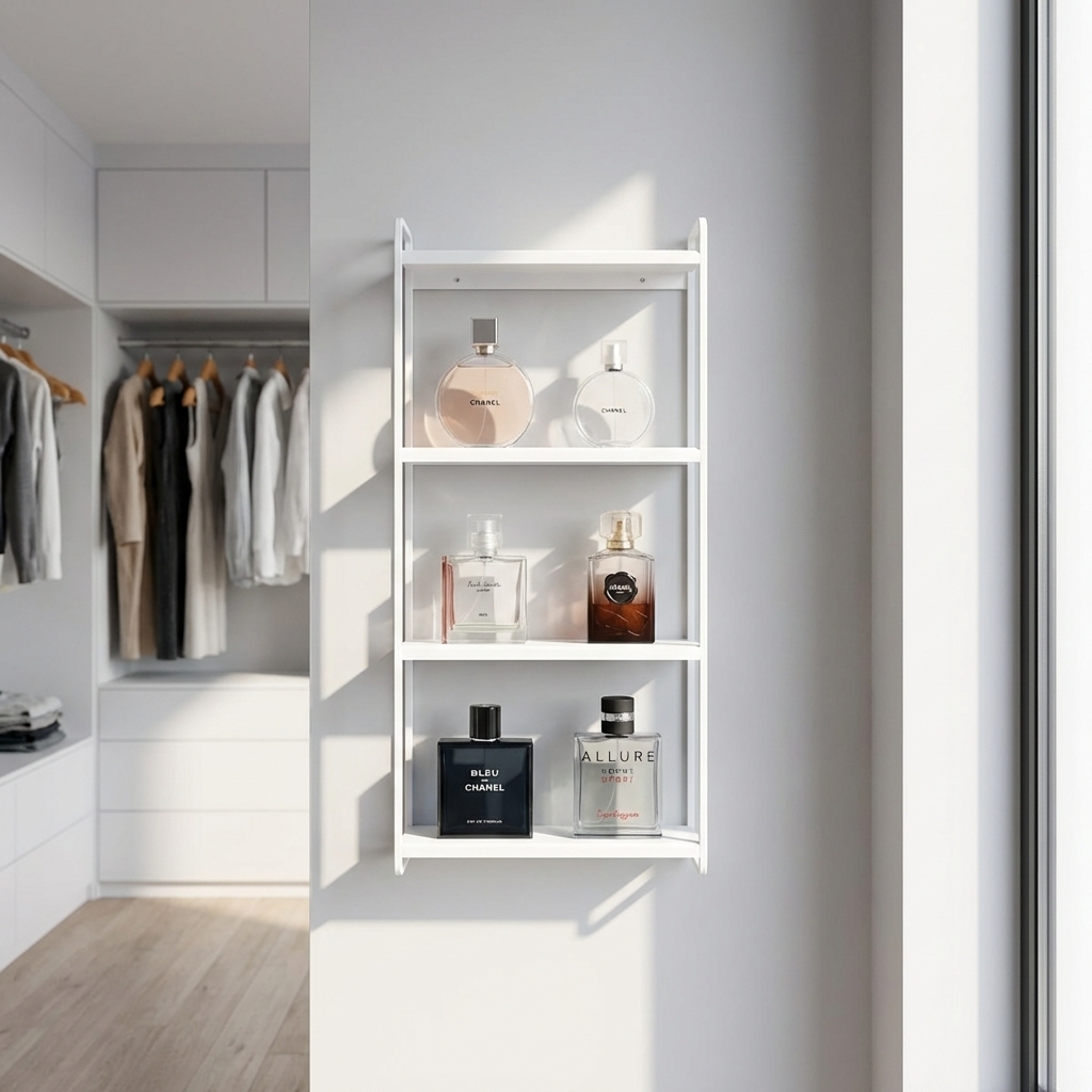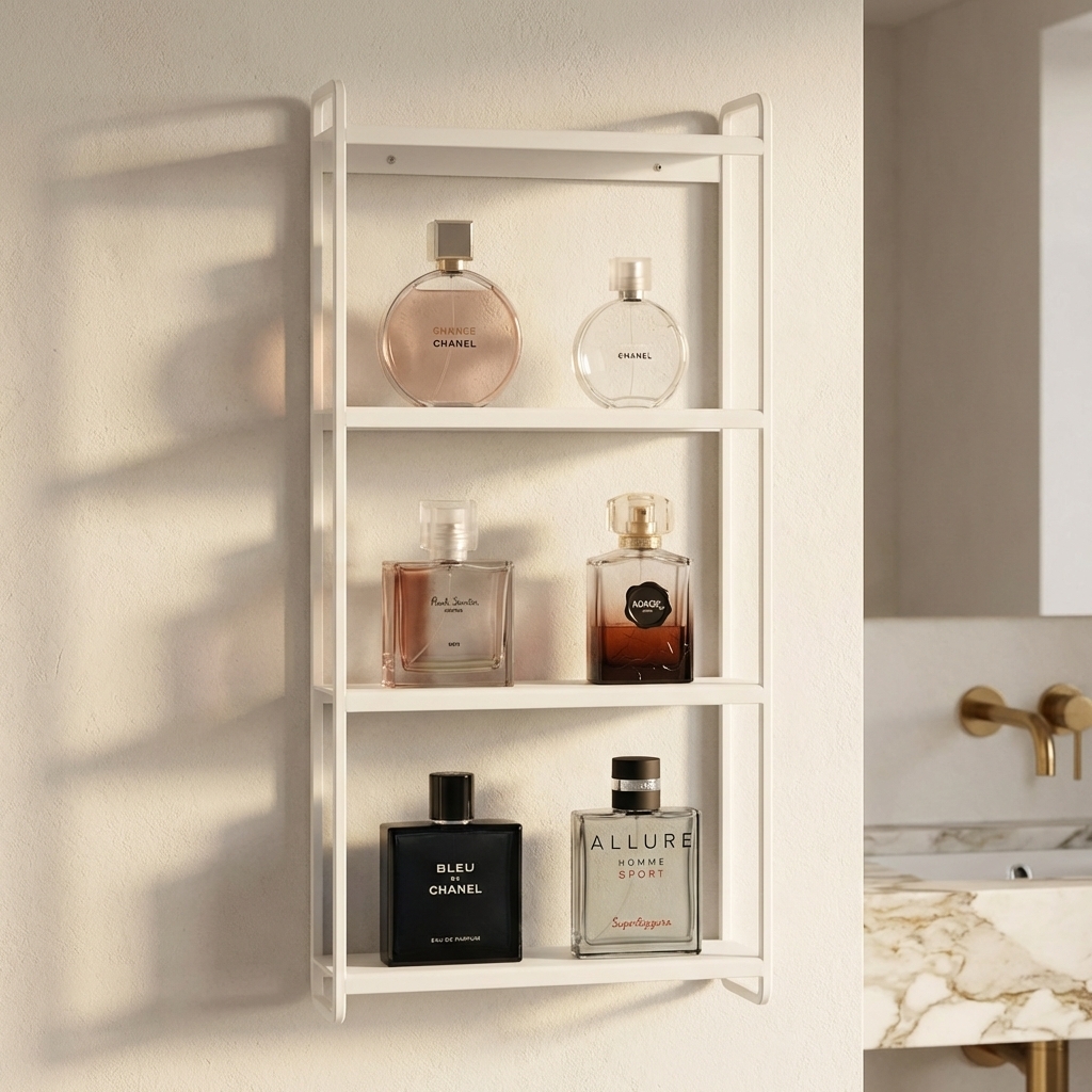 Hylde til parfumer - hvid - Dansk designHylde til parfumer - hvid - til badeværelset