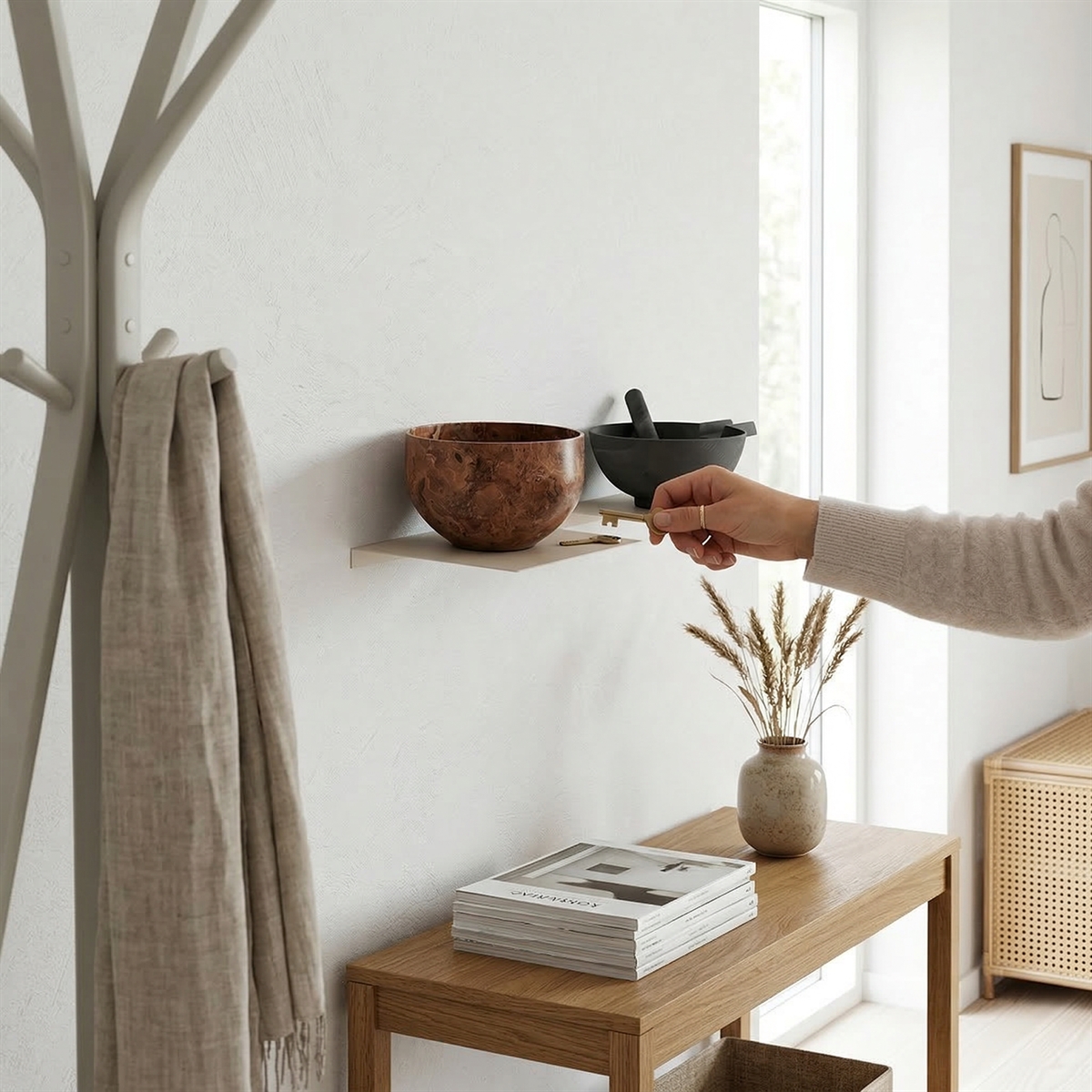 Brug hylderne til udstilling af pyntegenstande, urtepotter, vaser og lign, eller som lille natbord til vækkeuret.