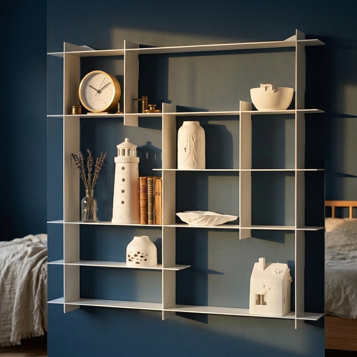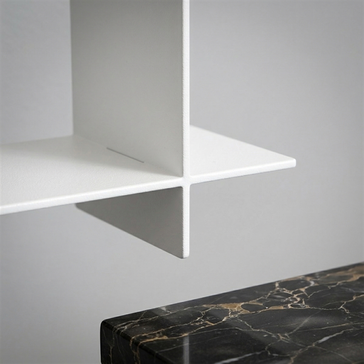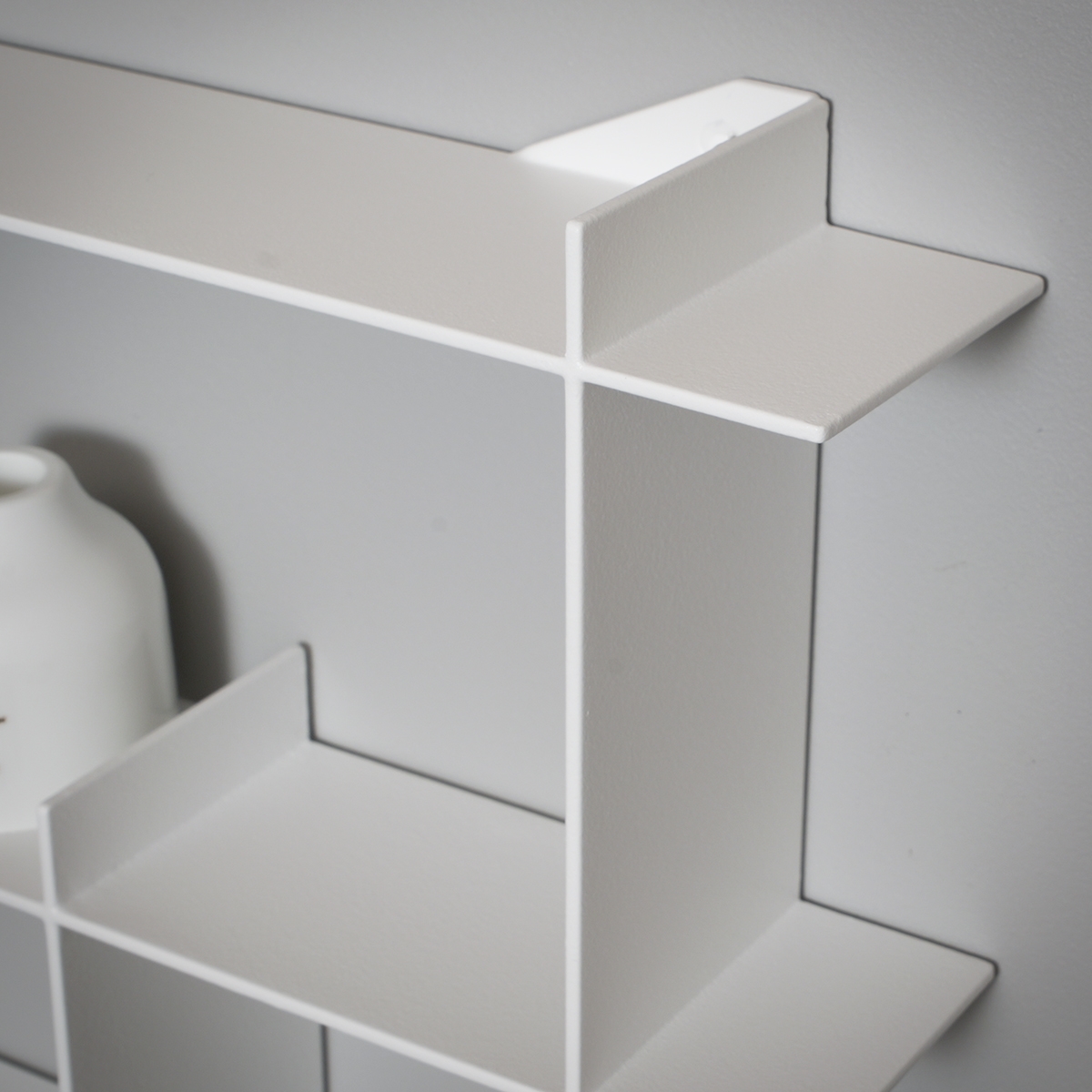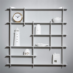 Hylde / Sættekasse i hvidt metal i et klassisk og stilrent design der fremhæver dine pynteting. Hylden er en del af vores Como Niveau serie og er den største display hylde i serien. Alt er fremstillet i EU.