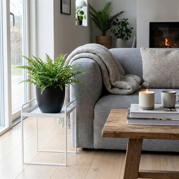 Den fine plantestander er helt perfekt til planter og blomster eller som et lille sidebord ved sofaen eller sengen. Fremstillet af pulverlakeret metal. Klassisk, stilren og elegant lille reol til hjemmet.